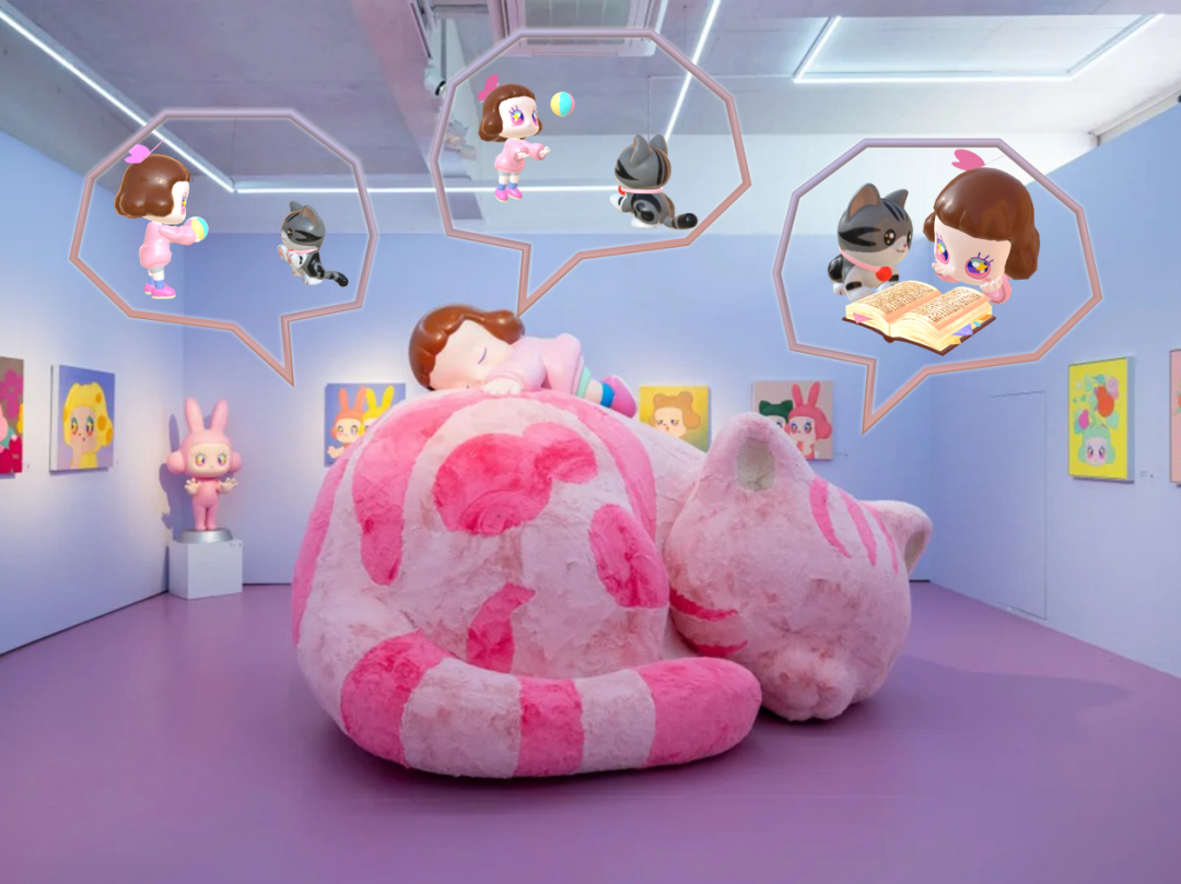 此次展览中,“仙想想”首次脱去标志性兔子装扮,以“小女孩原型”形象登场。她既纯真又睿智,代表了内在能量与情感力量的具象化投射。