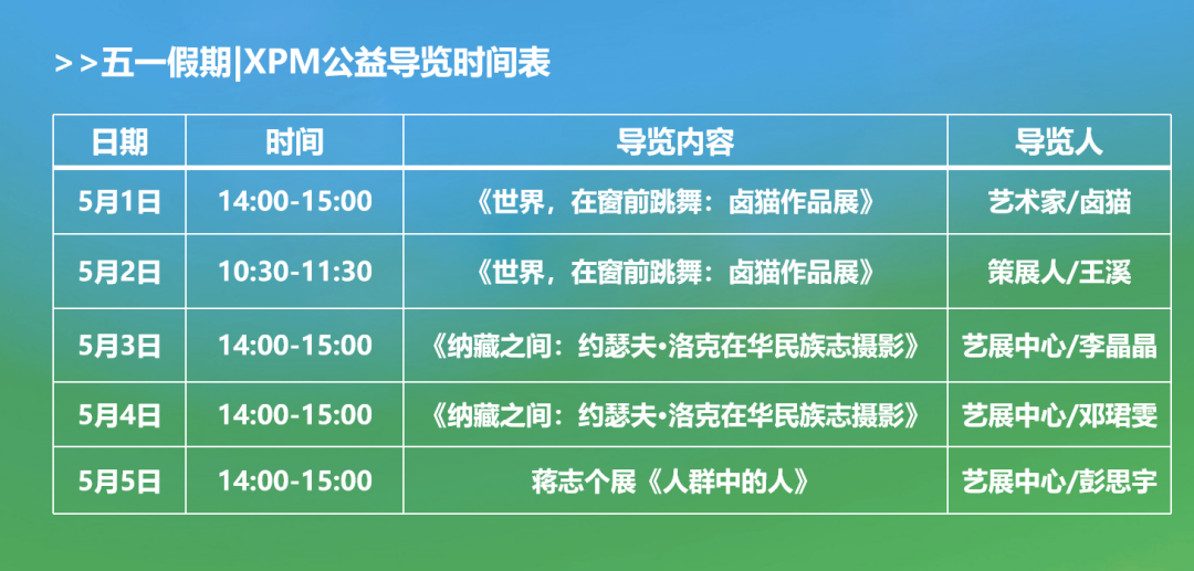 *公益导览无需预约,请观众朋友提前购买展览门票,导览开始前10分钟在相应展厅入口处等待即可