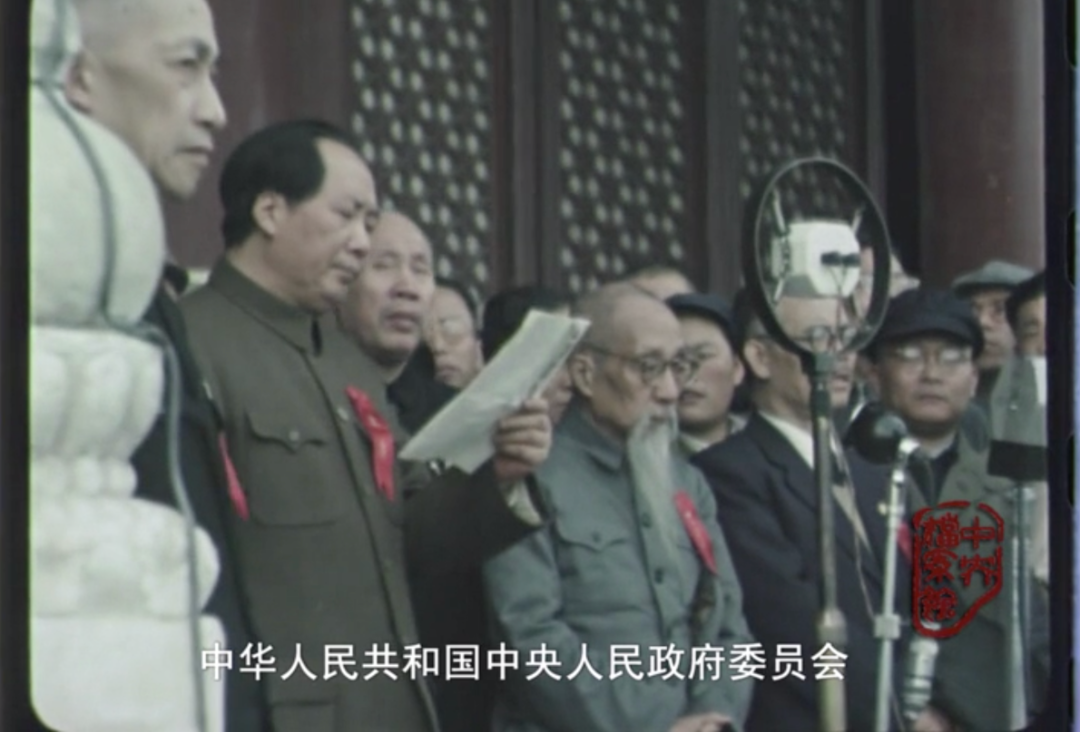 中华人民共和国中央人民政府成立典礼 原始影像(截图)——由中央档案馆提供