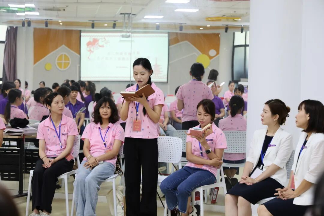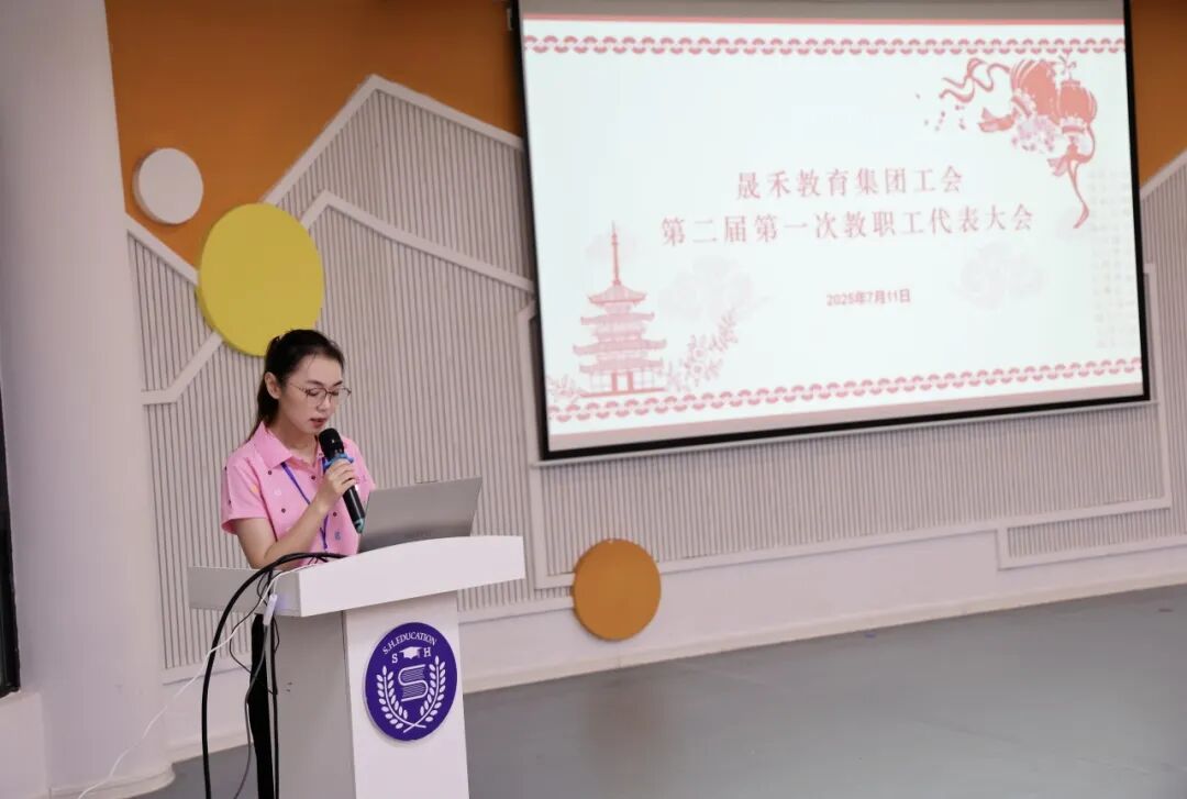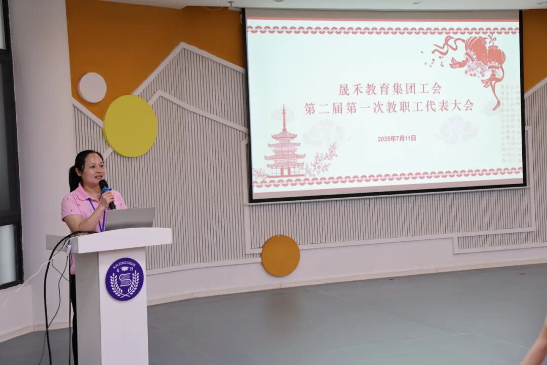 接着,方总园长从德、能、勤、绩、廉以及存在的不足,六个方面向大会进行个人述廉述职。工会主席周靖英、女工委主任张燕萍分别向大会做了《晟禾教育集团2024-2025学年工会工作报告》和《晟禾教育集团2024-2025学年女工工作报告》,展现了集团在教职工关怀与女工权益保障上的扎实举措。