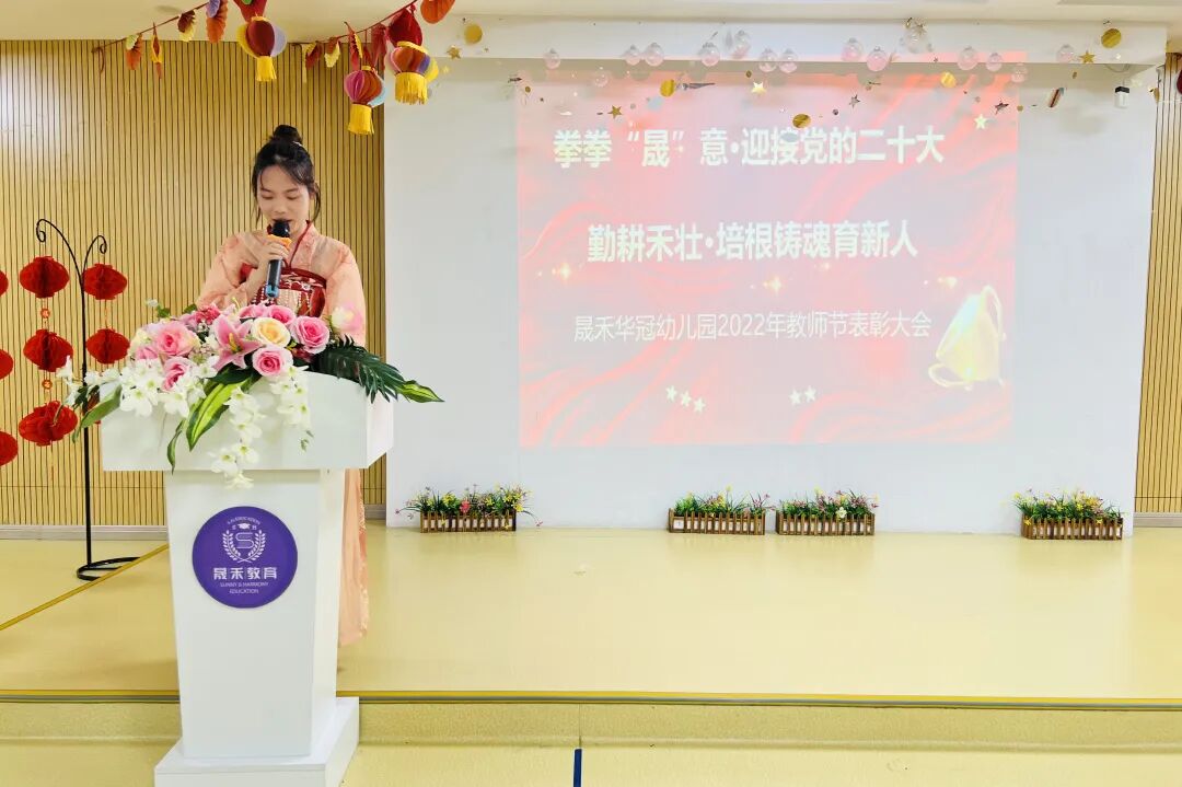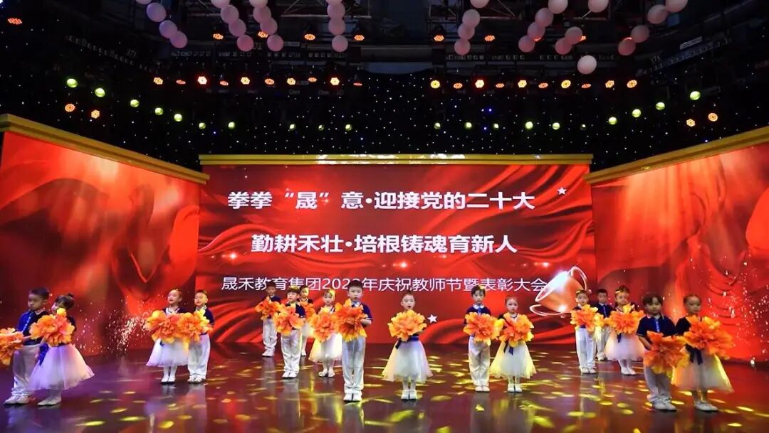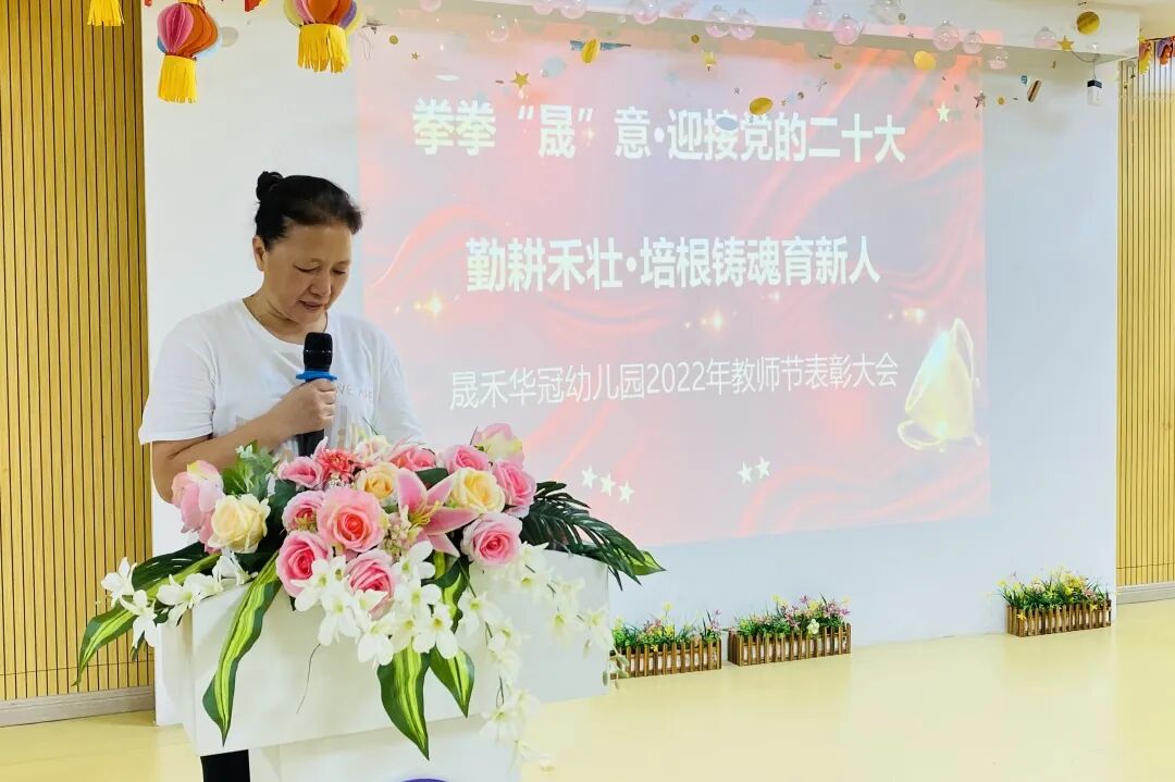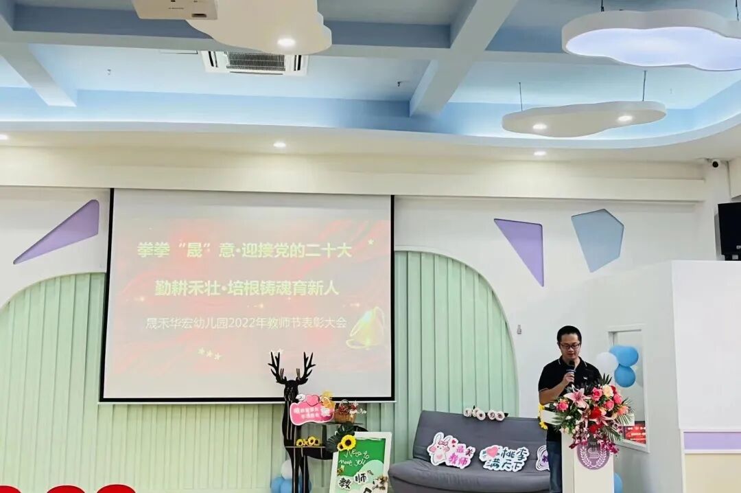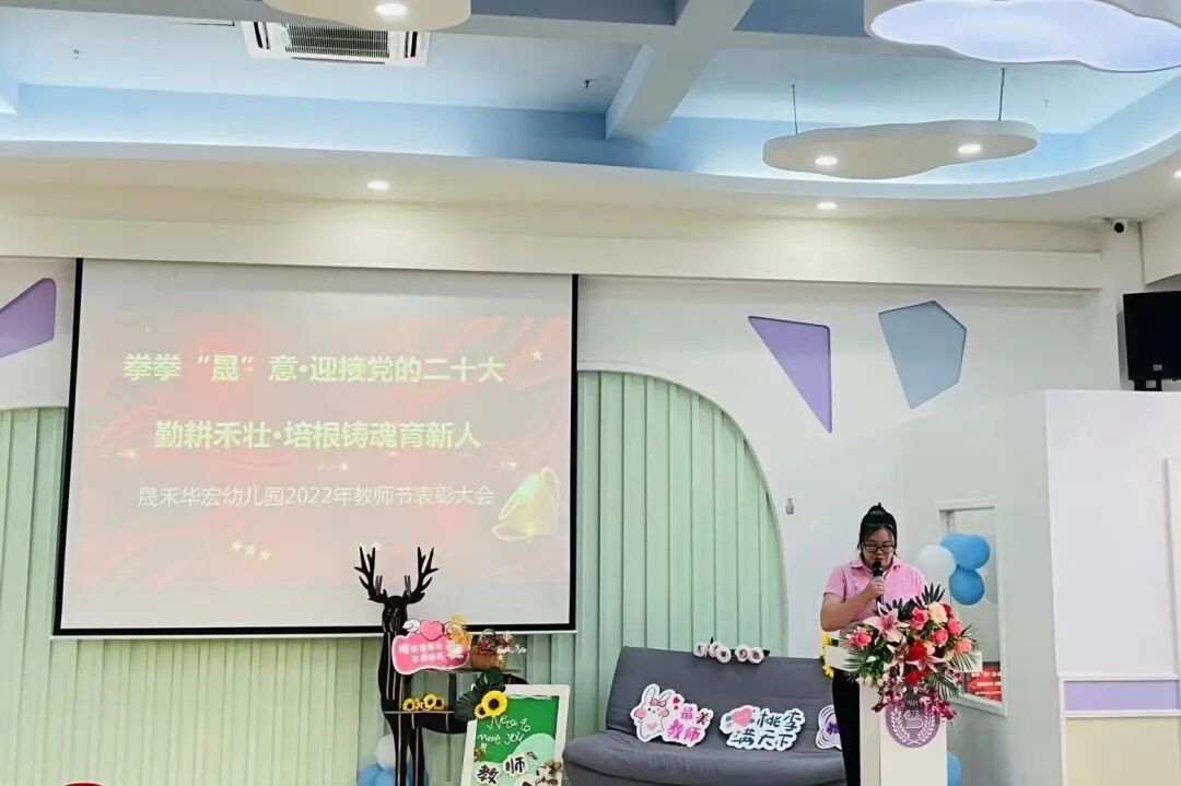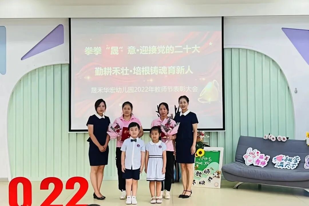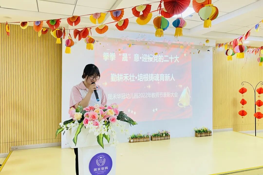 9月9日,晟禾教育集团旗下九所幼儿园的老师们欢聚在各自园所,共同举行了“拳拳‘晟’意喜迎党的二十大 勤耕禾壮培根铸魂育新人”庆祝第38个教师节暨表彰大会。