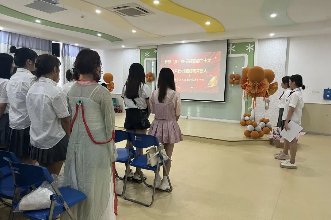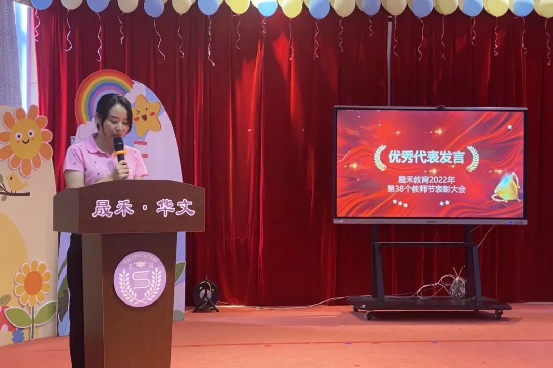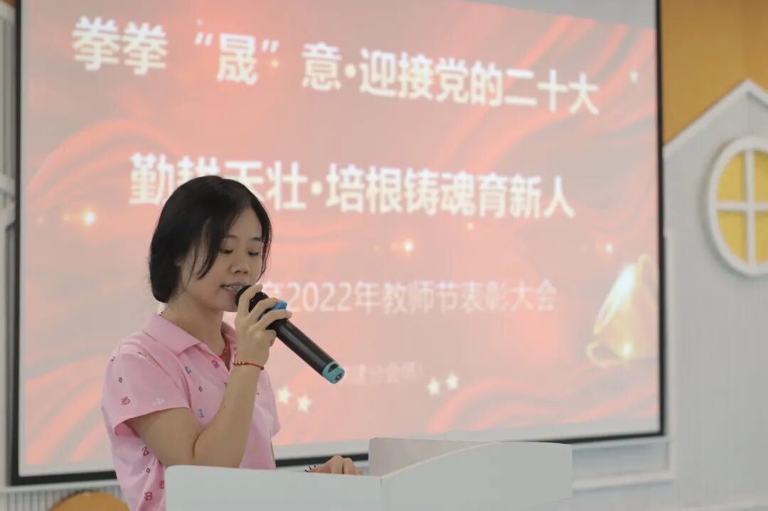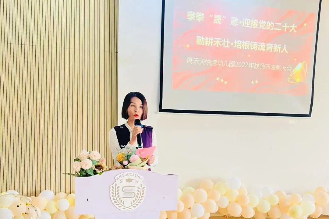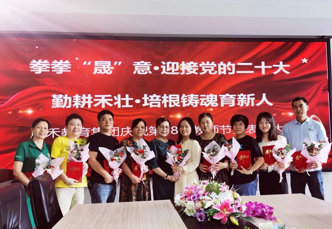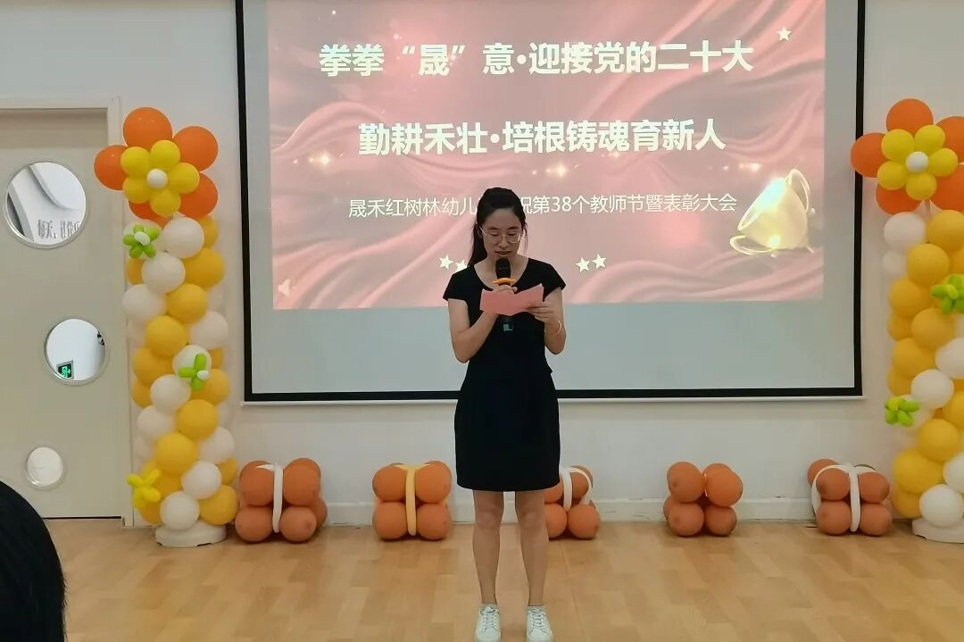 9月9日,晟禾教育集团旗下九所幼儿园的老师们欢聚在各自园所,共同举行了“拳拳‘晟’意喜迎党的二十大 勤耕禾壮培根铸魂育新人”庆祝第38个教师节暨表彰大会。