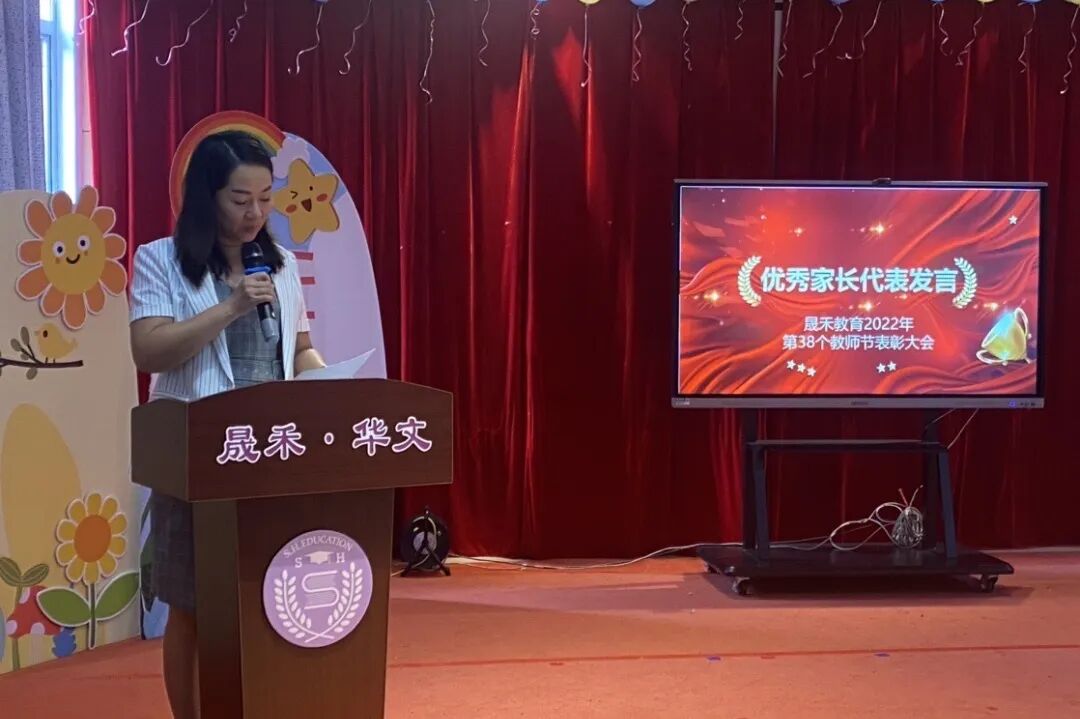 晟禾教育集团郑炳荣董事长也通过VCR,代表晟禾教育集团董事会向辛勤工作在教育战线的教师们致以节日的问候!向受表彰的优秀教师、获得各项荣誉称号以及在各项工作中取得突出成绩的教职工、优秀家长们致以最热烈的祝贺!向默默奉献在各自岗位上的全体教职工表示最诚挚的谢意!