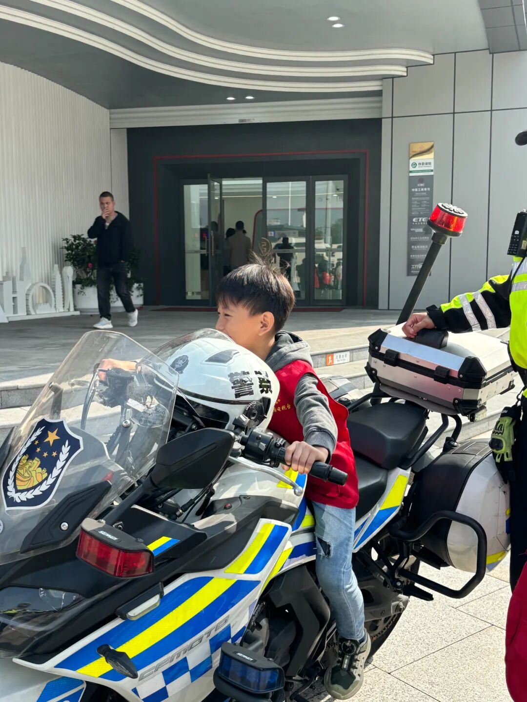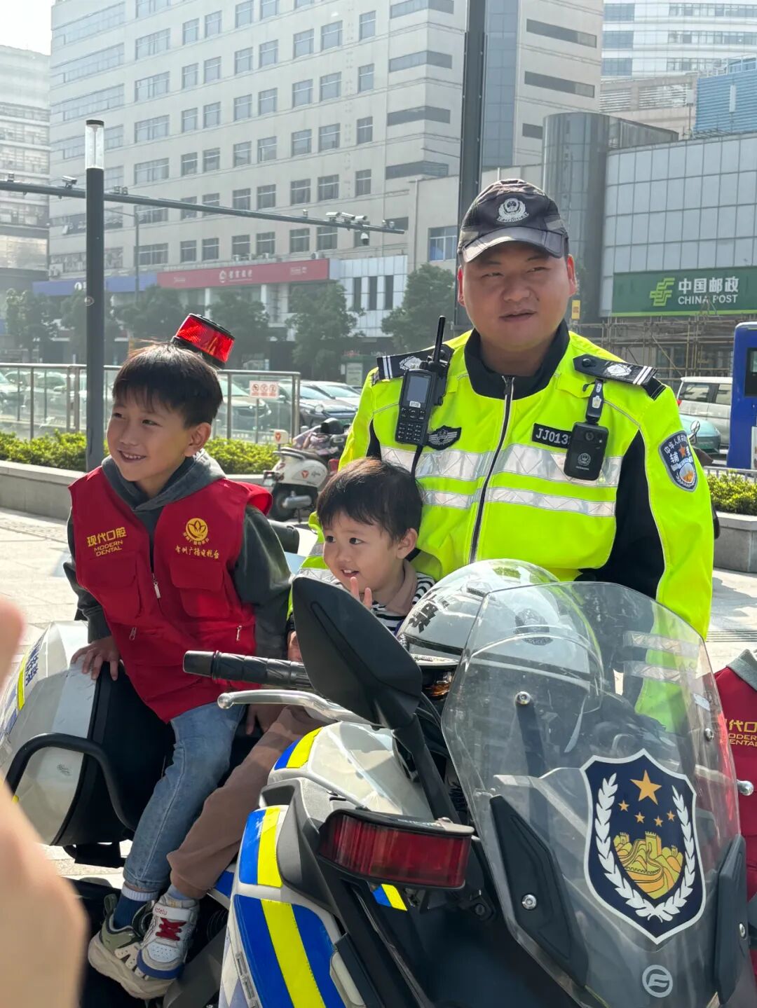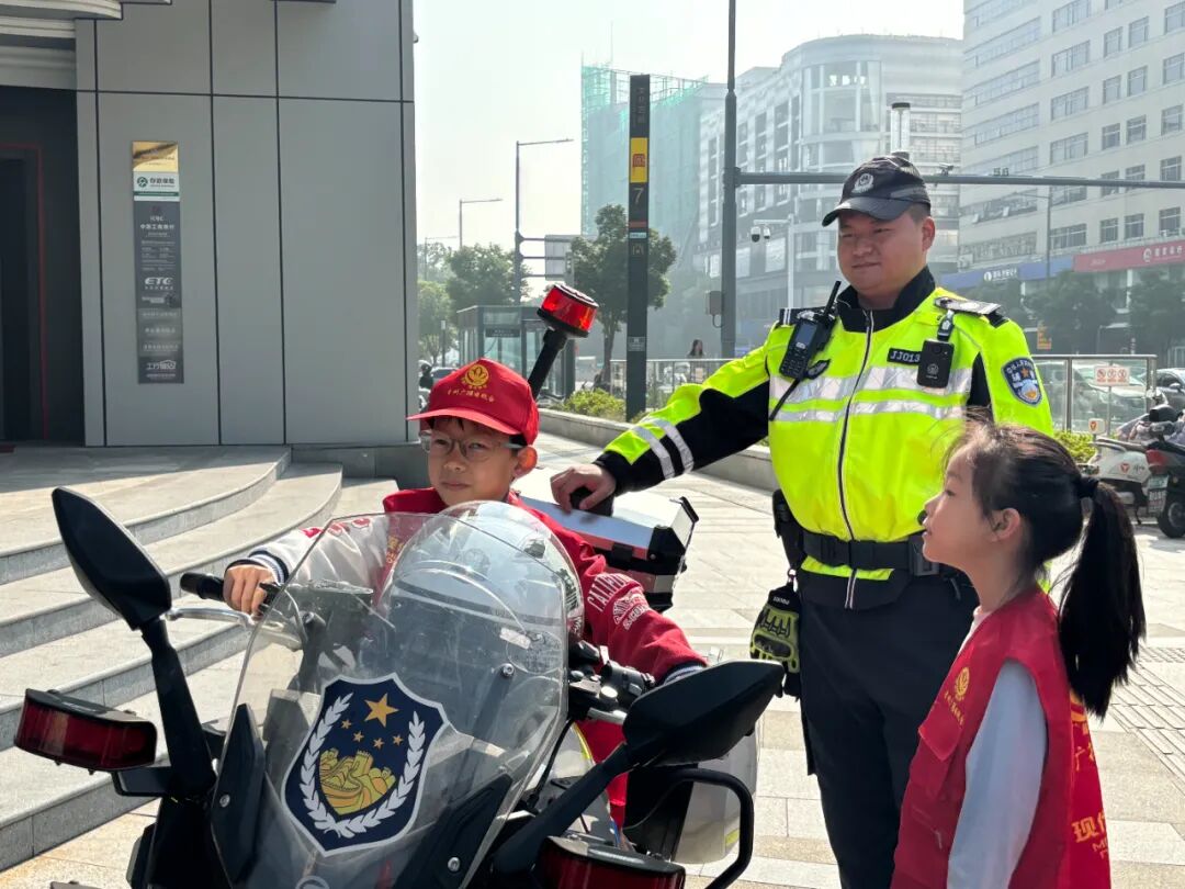 交警叔叔随后给小记者们展示了威风凛凛的铁骑摩托车,让孩子们“零距离”体验和感受铁骑的风采与荣光。