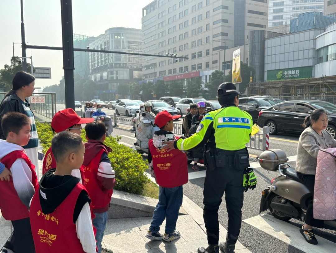 为了让小记者们在实践中学习交通安全知识、增强交通意识,11月3日上午,常州广播电视台融媒体小记者团组织20组左右小记者们前往文化宫交通警察岗亭参加“小交警”体验活动。