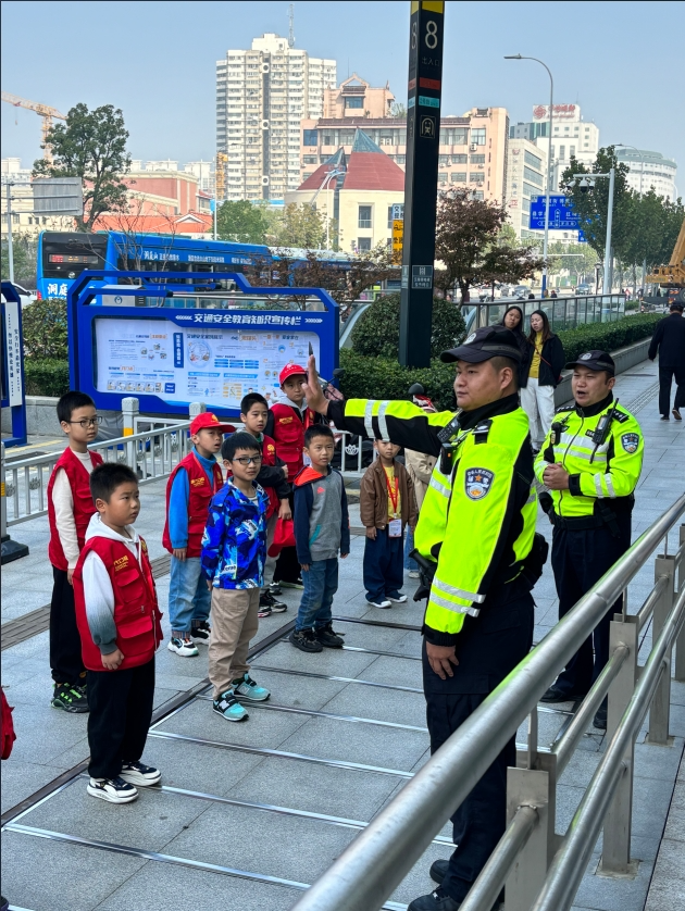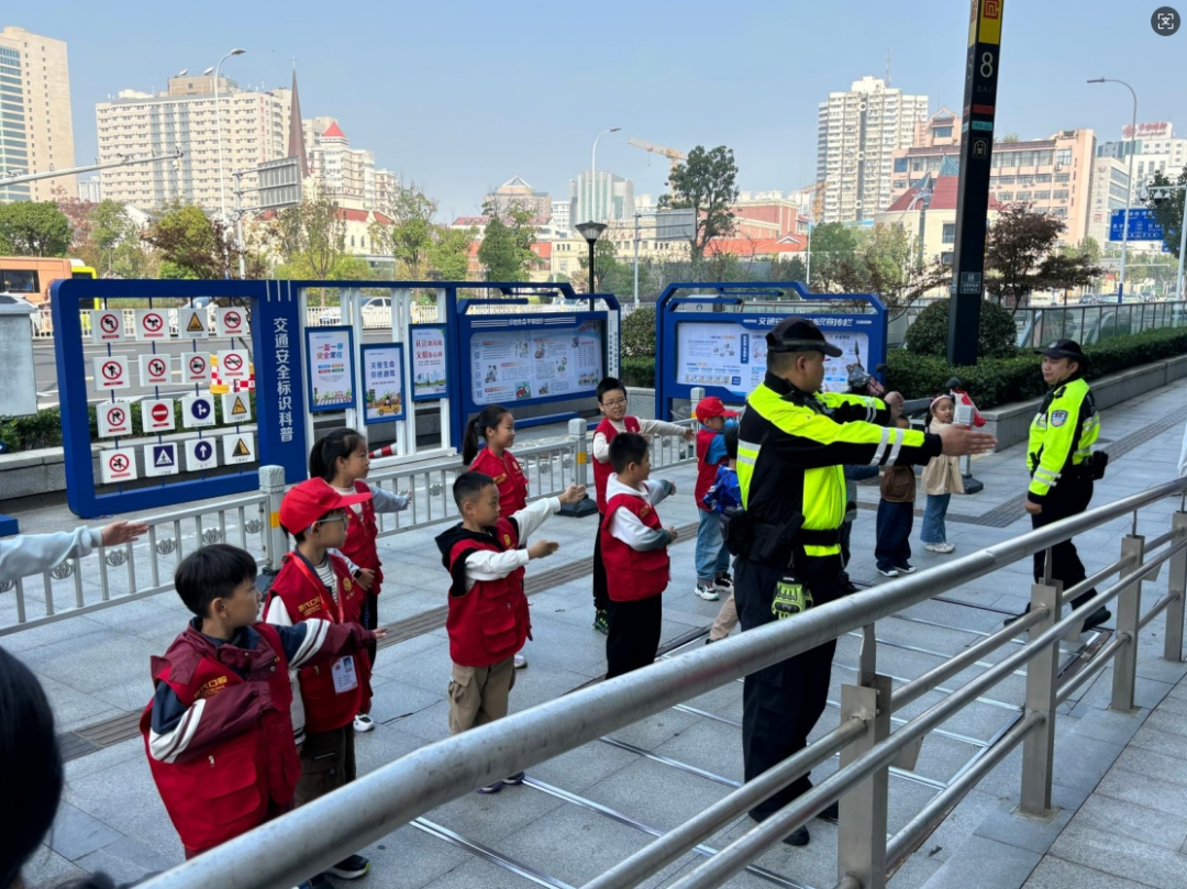 最后,交警叔叔为小记者们示范了标准的交通手势,并带领孩子们一起学习起来。在交警叔叔的悉心指导下,孩子们很快掌握了交通指挥的动作要领。