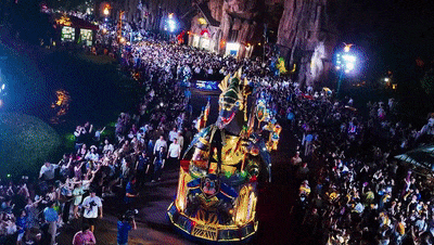 荧光花车大巡游缓缓驶来
