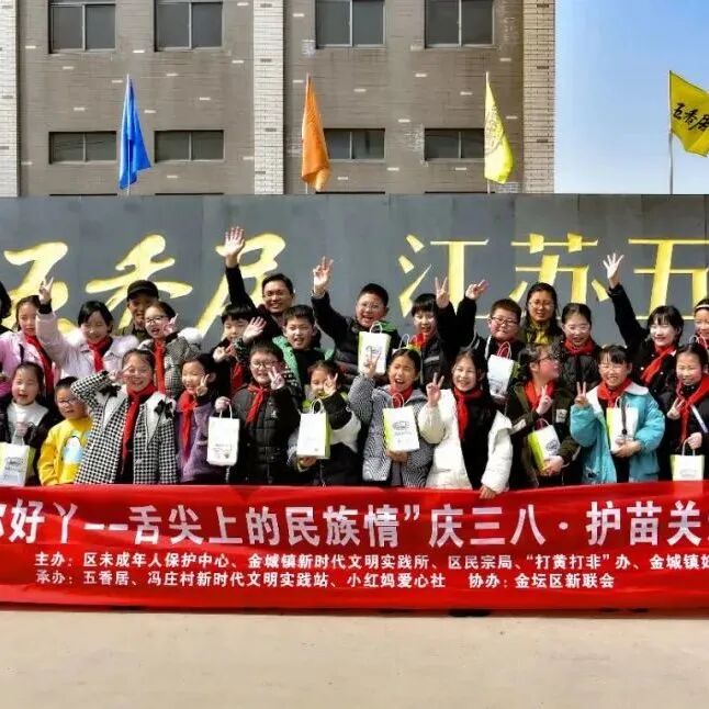3月4日,金坛区未成年人保护中心、金城镇新时代文明实践所、区民宗局、“扫黄打非”办、金城镇妇联、冯庄村新时代文明实践站、小红妈爱心社、朝阳分校、新联会、德艺教育等单位走进江苏五香居食品有限公司(以下简称五香居)。