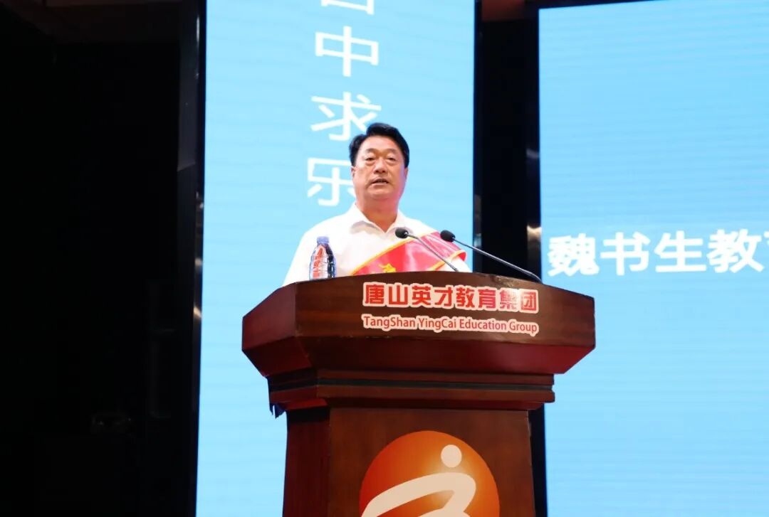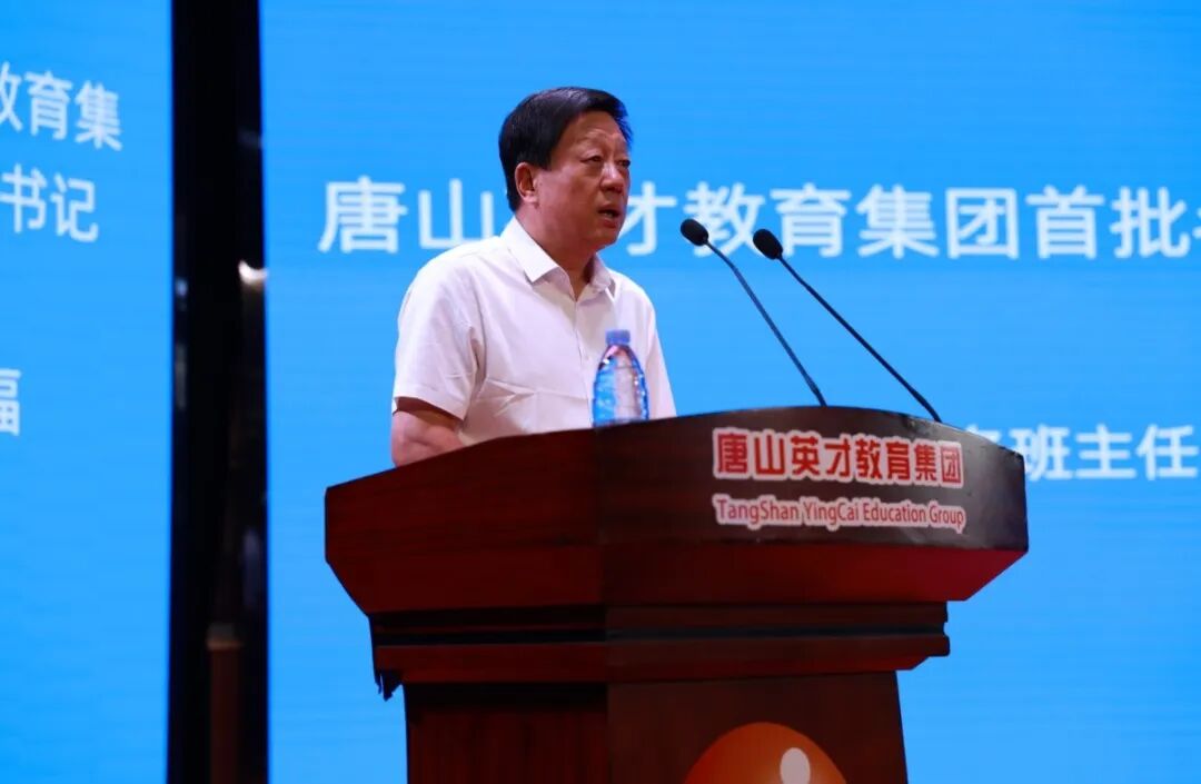 刘董事长首先对本次大会的圆满成功及首批进入名师、名班主任工作室的教师们表示祝贺。其次他表示:工作室的成立是建设百年英才的基石,是英才驶向深蓝的引擎。英才通过25年不断发展走到了集团化的大形势下经历良多,如今在教育形式调整,人口下降,经济下滑的背景下,唐山英才教育集团教师业务水平如何快速提升,需紧扣党的教育方针,教育主管部门要求,在学校内开展整体综合性大培训,形成小、初、高一体化,做好课程衔接,实现管理、评价、课程及奖惩统一。最后他希望教师运用自身潜能,自主研发课程,解决各项教育难题,实现小学校长出大情怀!