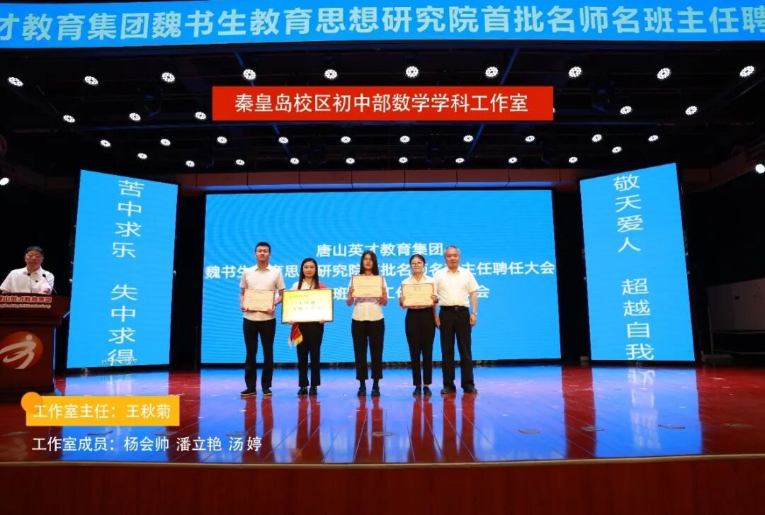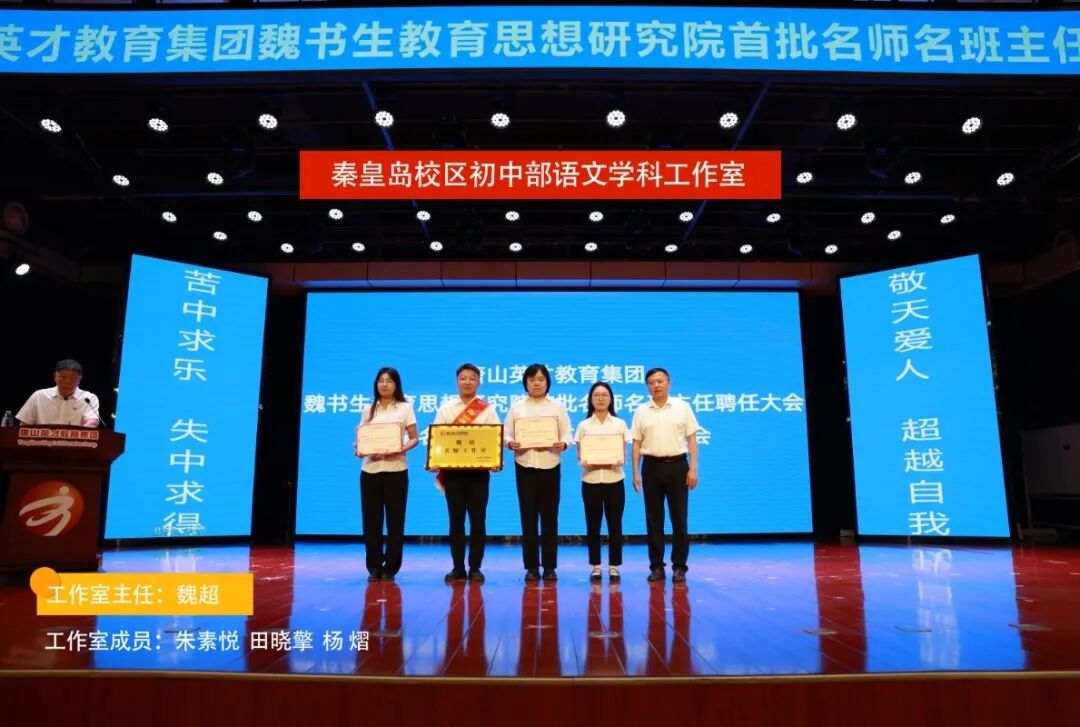 秦皇岛校区校长鄂秦泰、秦皇岛校区初中部校长赵春海分别为秦皇岛初中部语文、数学学科名师工作室授牌,并为工作室成员颁发聘书。
