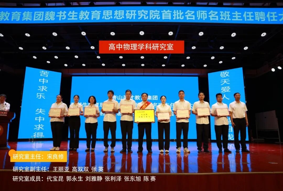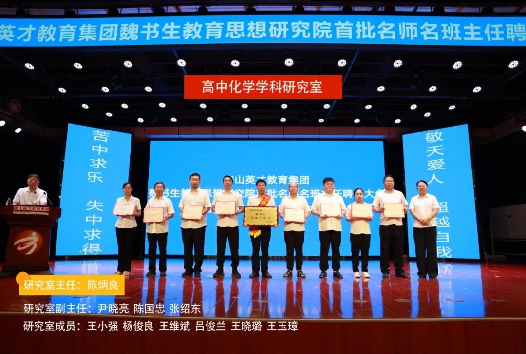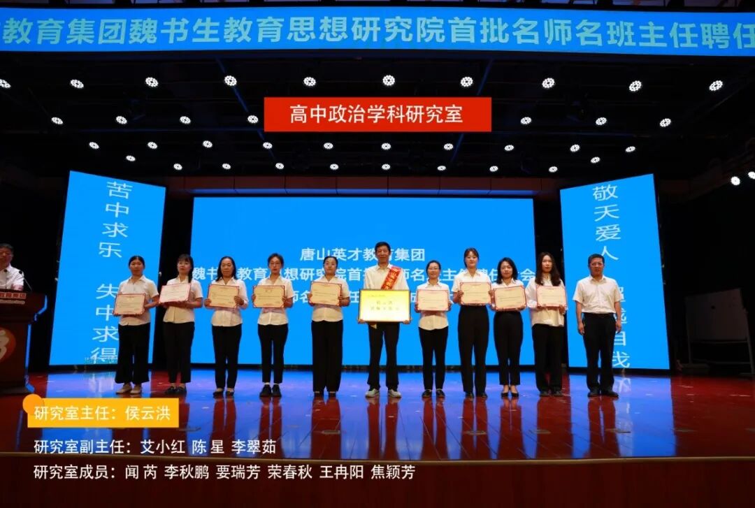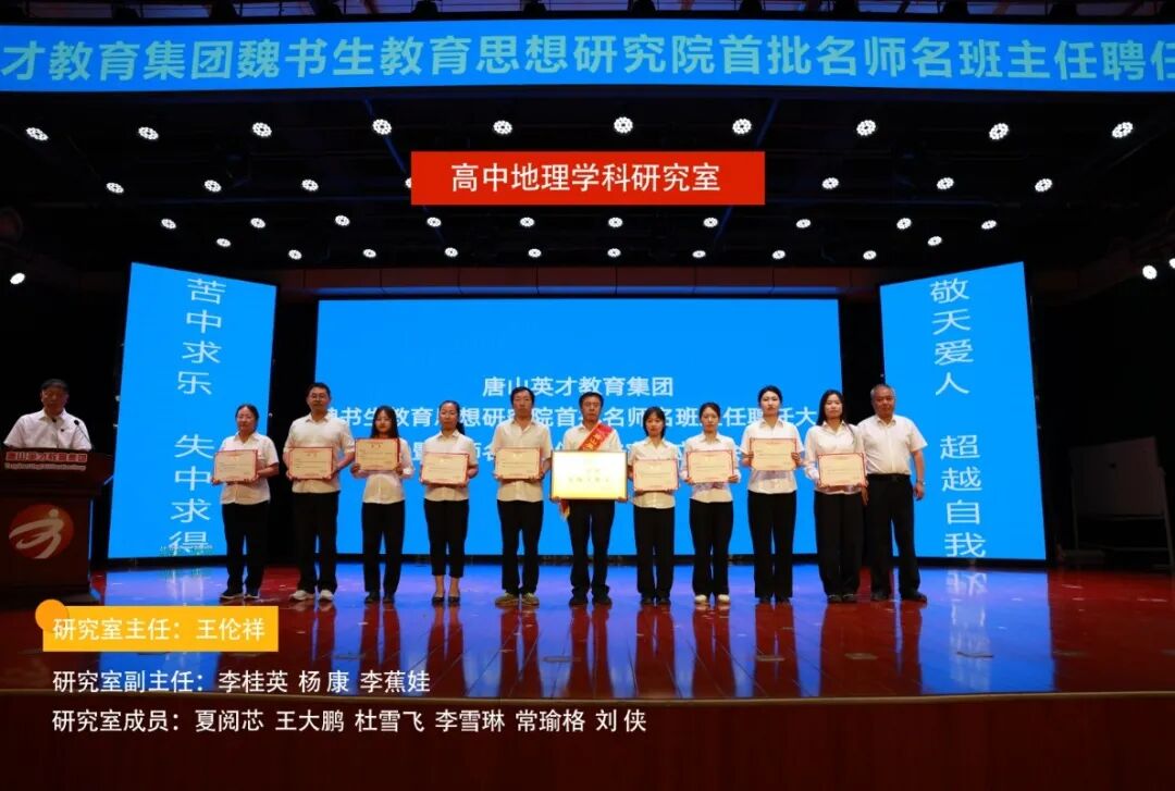 党总支书记戚玉福,副董事长何山,董事办主任兼学校核心文化研究院院长任永生,常务副总校长兼一中英才分校、唐山校区校长肖振儒,副总校长兼唐山校区国际部校长刘亮君及各校区校长分别为高中九大学科研究室授牌,并为研究室成员颁发聘书。