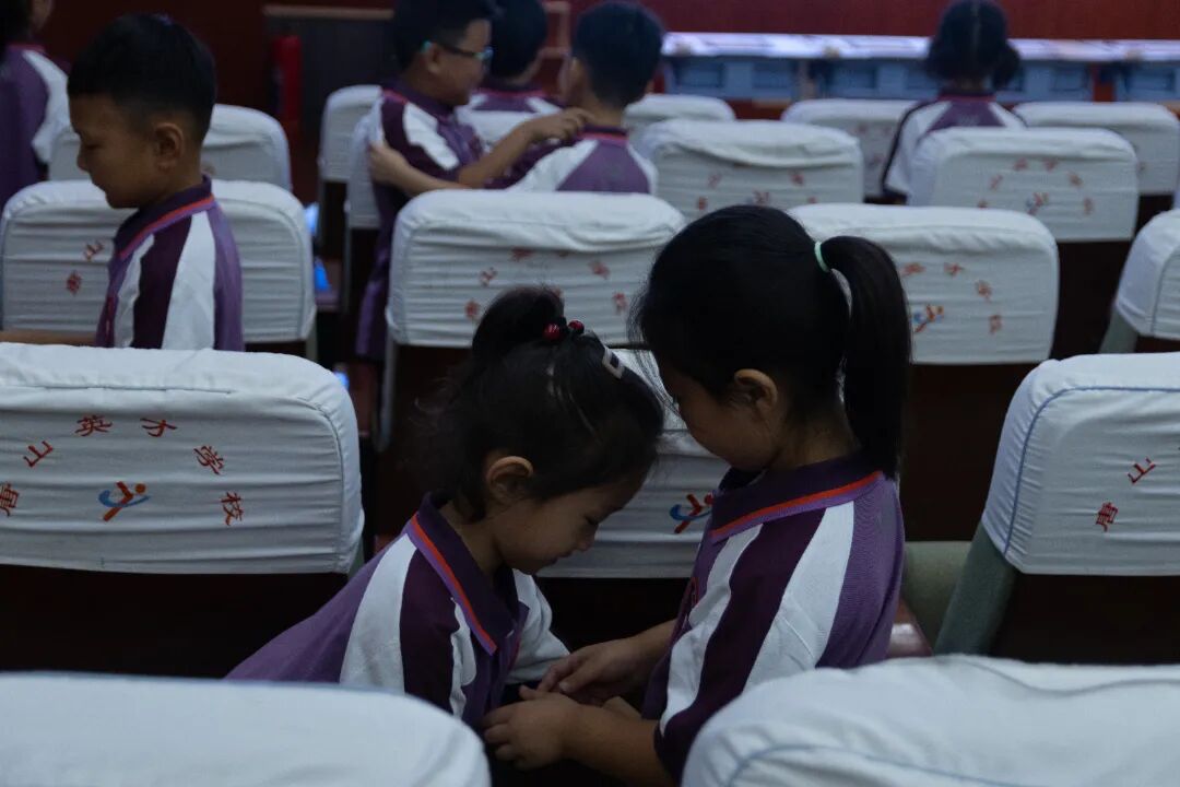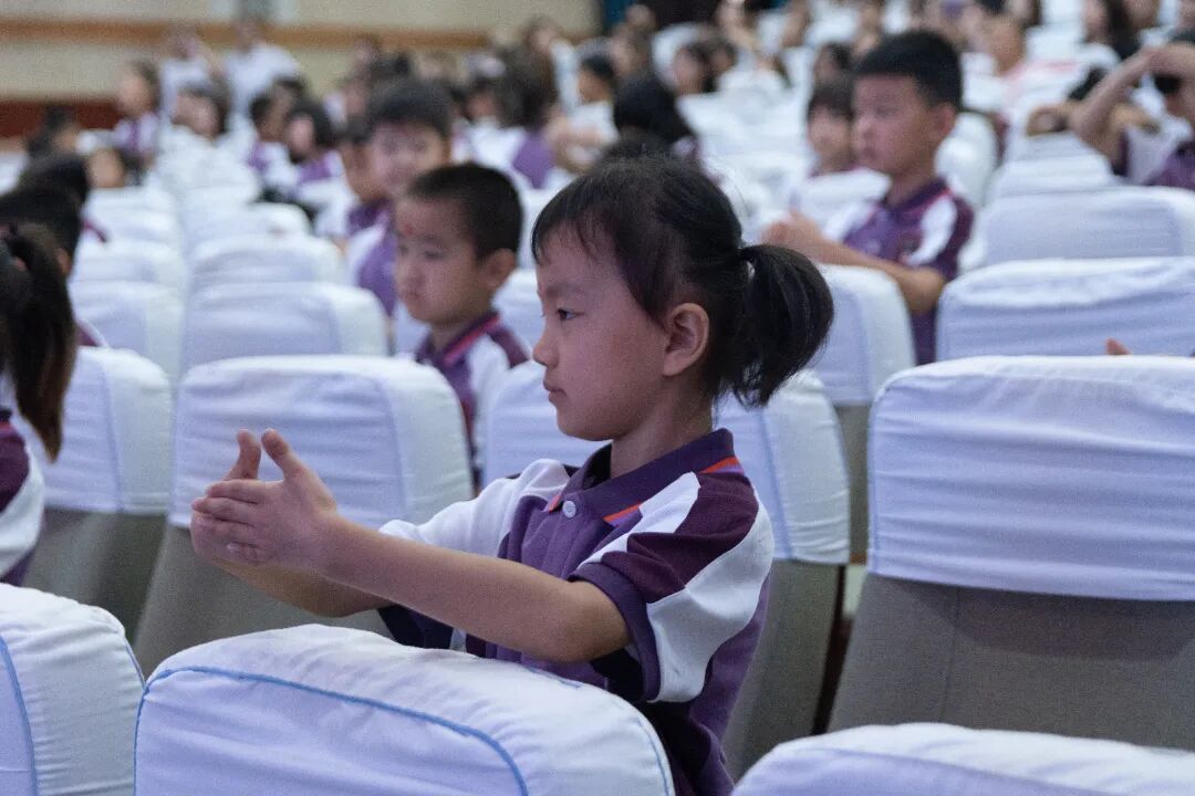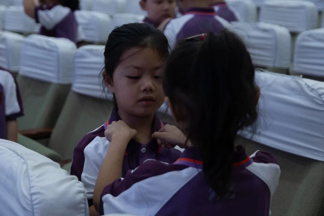 童蒙之学,始于衣冠;先正衣冠,后明事理。衣冠,是让我们忆起先祖那些优秀品德的最好载体,也是让孩子们知书明理的第一步。一年级的老师们站到台前,为同学们示范正衣冠,同学们先是自正衣冠,再互正衣冠!