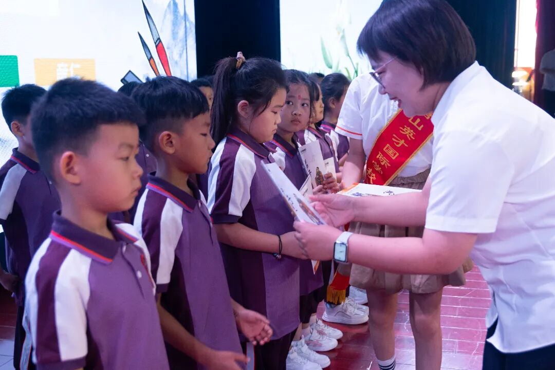 《弟子规》是我们精心为孩子们准备的一份礼物。它为孩子们打开了经典诵读的一扇小小的窗户,真诚地希望孩子们能够透过这些窗户去领略经典的魅力,去体验、感悟及至建构属于自己的人生风景。由张校长、李校长和李玮琳主任为孩子们赠《弟子规》,并由德育主任柴丽静带领大家一起诵读《弟子规》。