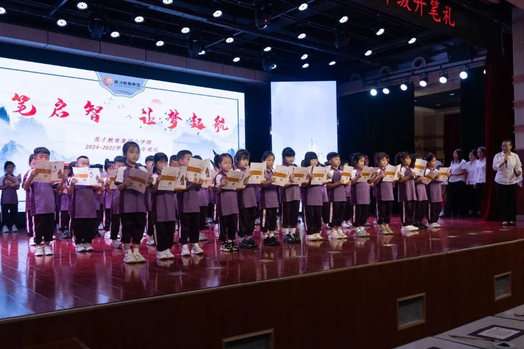 庄严的开笔礼是学生难忘的美好回忆,更是走进英才学习的第一步。良好的开端才能奠定幸福人生的基础,希望同学们谨遵“孝悌、谨信、爱众、亲仁”的英才校训,也祝愿同学们勇敢迈开学习的第一步,走好人生的每一步。