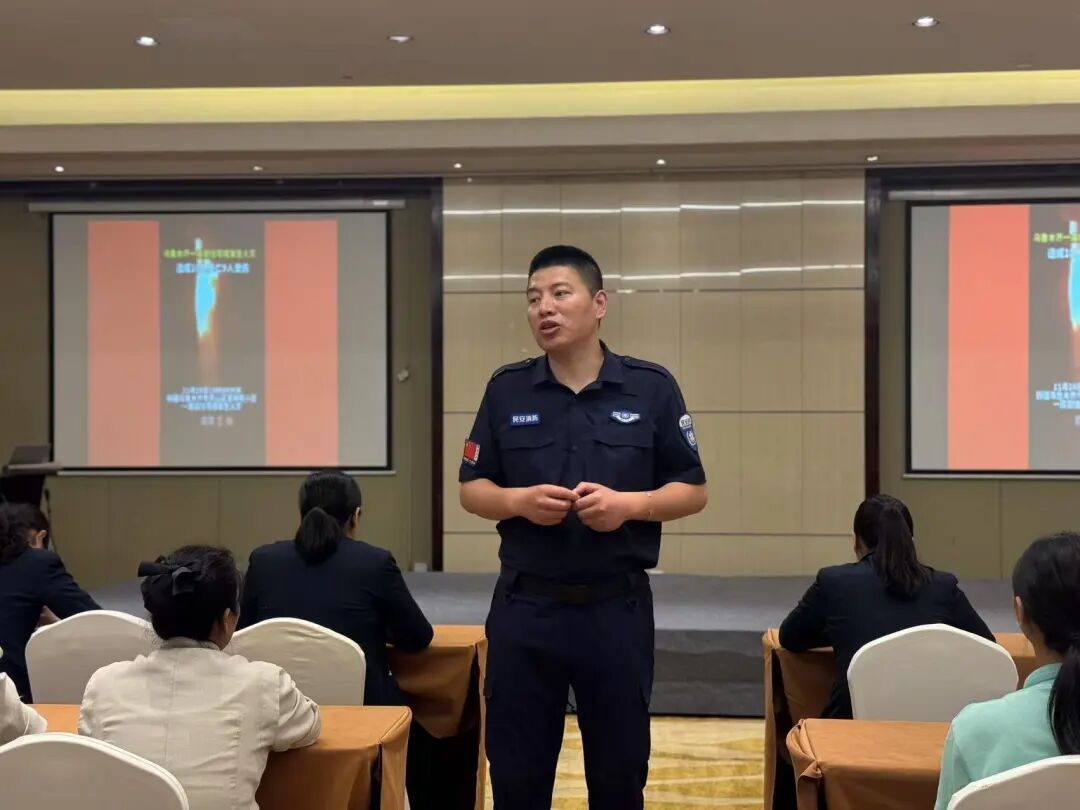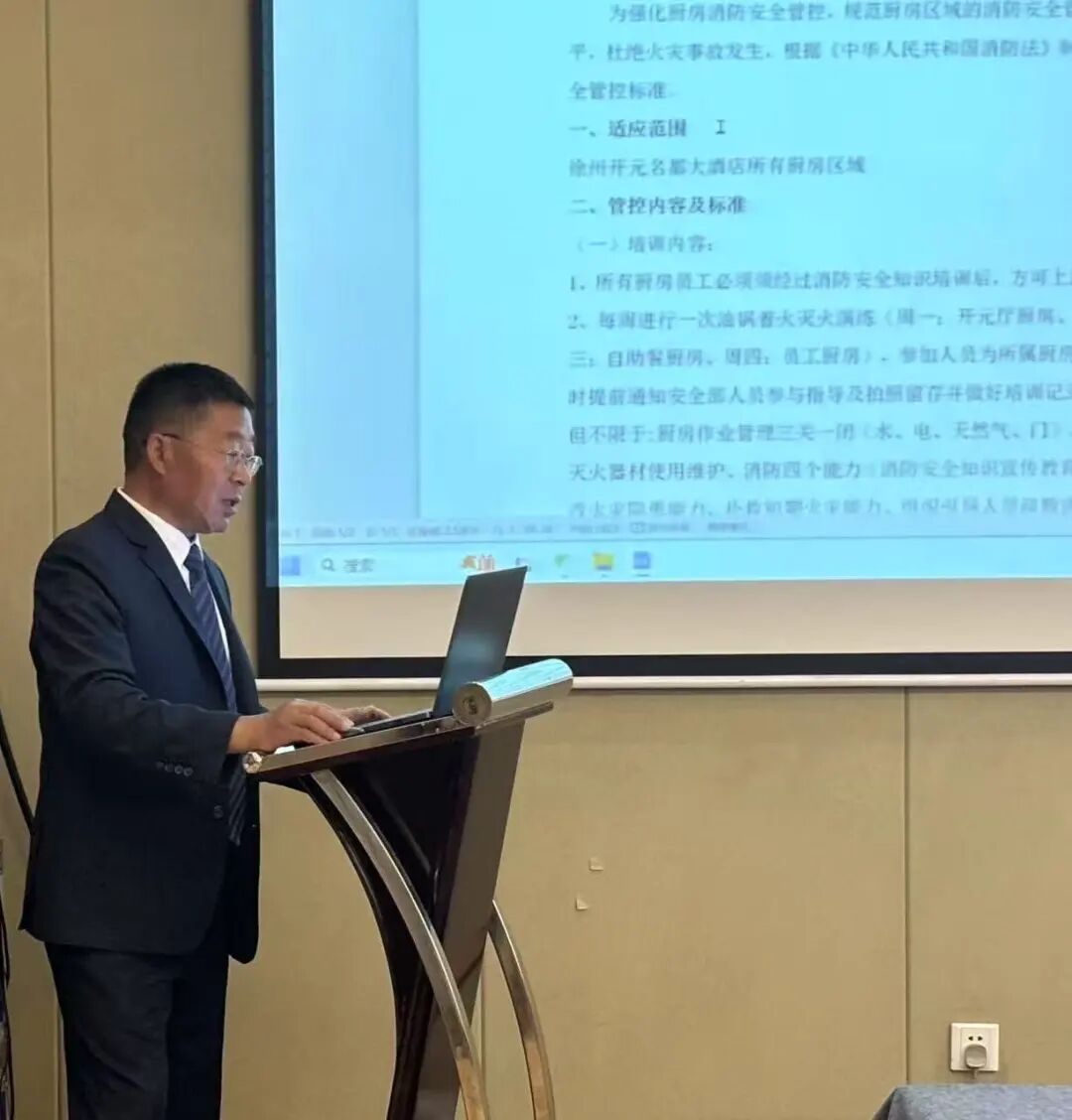 安全负责人程军讲解酒店内厨房、客房等地需注意的消防安全知识,通过开展形式多样的消防安全培训、演练及宣传活动,普及消防安全知识,增强全酒店员工的消防安全意识与自救互救能力。