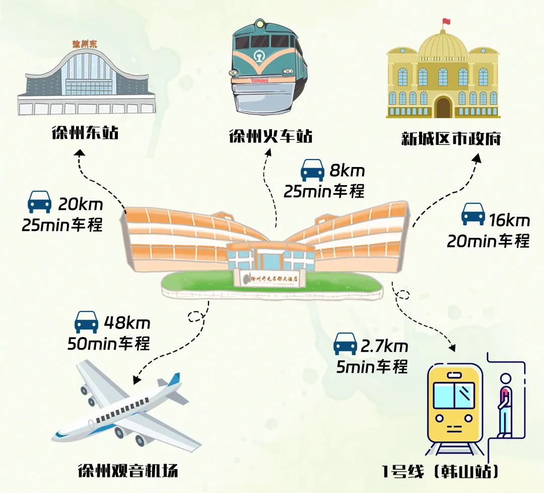 ✔酒店距离徐州火车站仅8km,25分钟车程