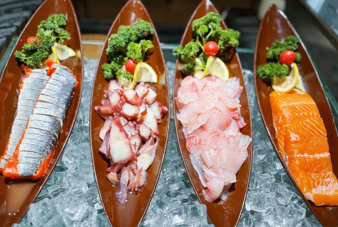 海鲜刺身、铁板烤肉、日式寿司