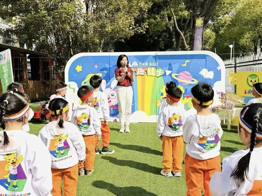 徒步沿途,分别设置了三个主题的补给站。探险家们来到第一站,“运动蹦蹦站”,通过挑战不同的运动项目完成第一站的闯关。第二站是“能量补给站”,幼儿园贴心的准备了山楂橙皮水、盐水、点心零食给探险者补充能量,与多美合影留念、盖章续行。第三站是“欢乐拍拍站”,探险者完成异域文化挑战即可继续向前行进。最终,每个小小探险家突破冲刺线,即完成挑战,收获一枚“徒步勇士”奖章。