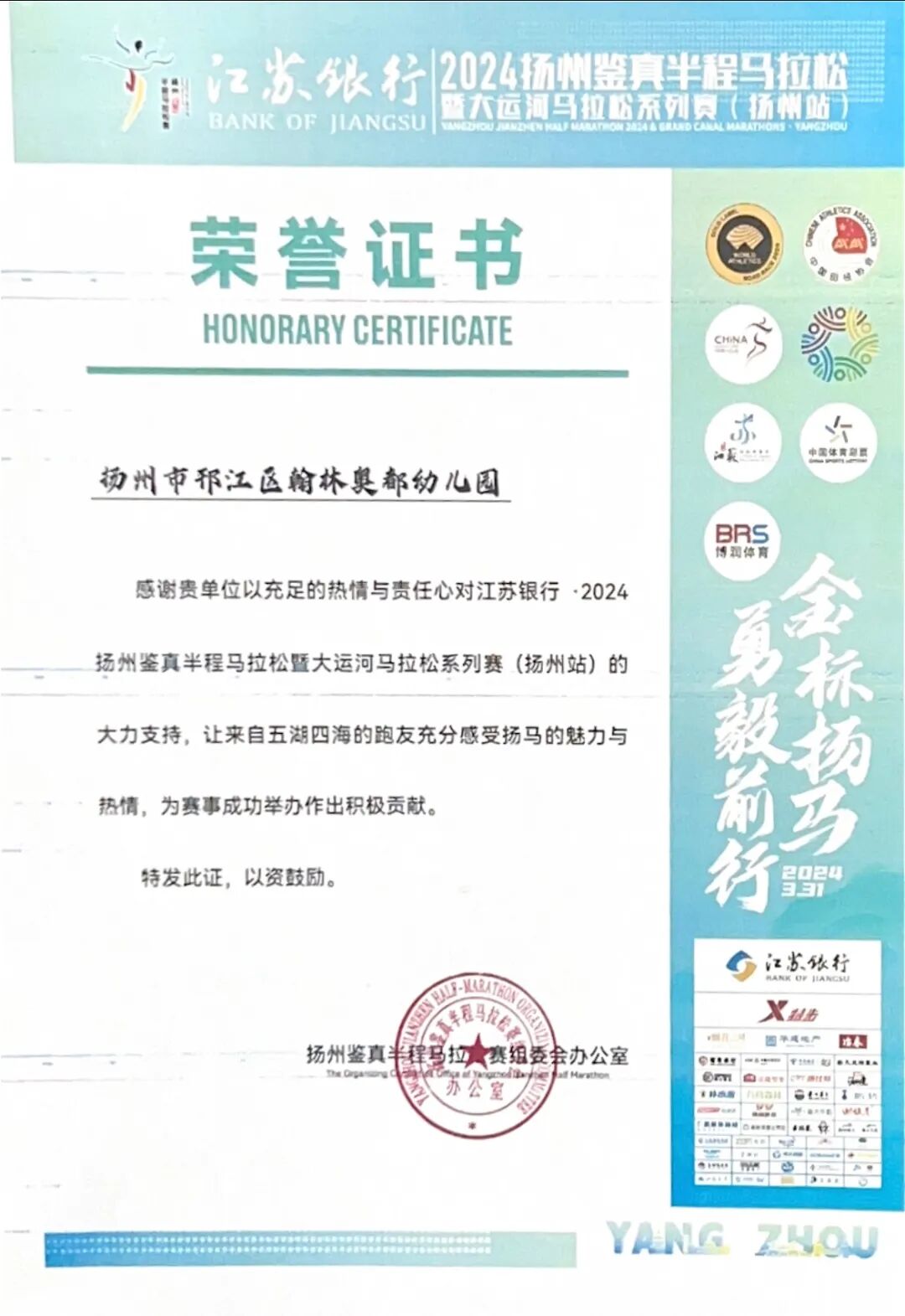 奥都园通过多元途径丰富幼儿的生活,拓展其视野,收获自信与成长。幼儿园组织幼儿参加2024年邗江区青少年阳光体育联赛棋类比赛并荣获团体一等奖;参加江苏省幼儿篮球赛并荣获“优秀表演奖”;组织教师、幼儿参与并成为2024扬州鉴真半程马拉松特邀展演嘉宾。多名幼儿在“希望之星”英文大赛省、市赛区获一、二等奖。百名幼儿在“童画之星”“童年童画”创意美术大赛中获特金奖、金奖。