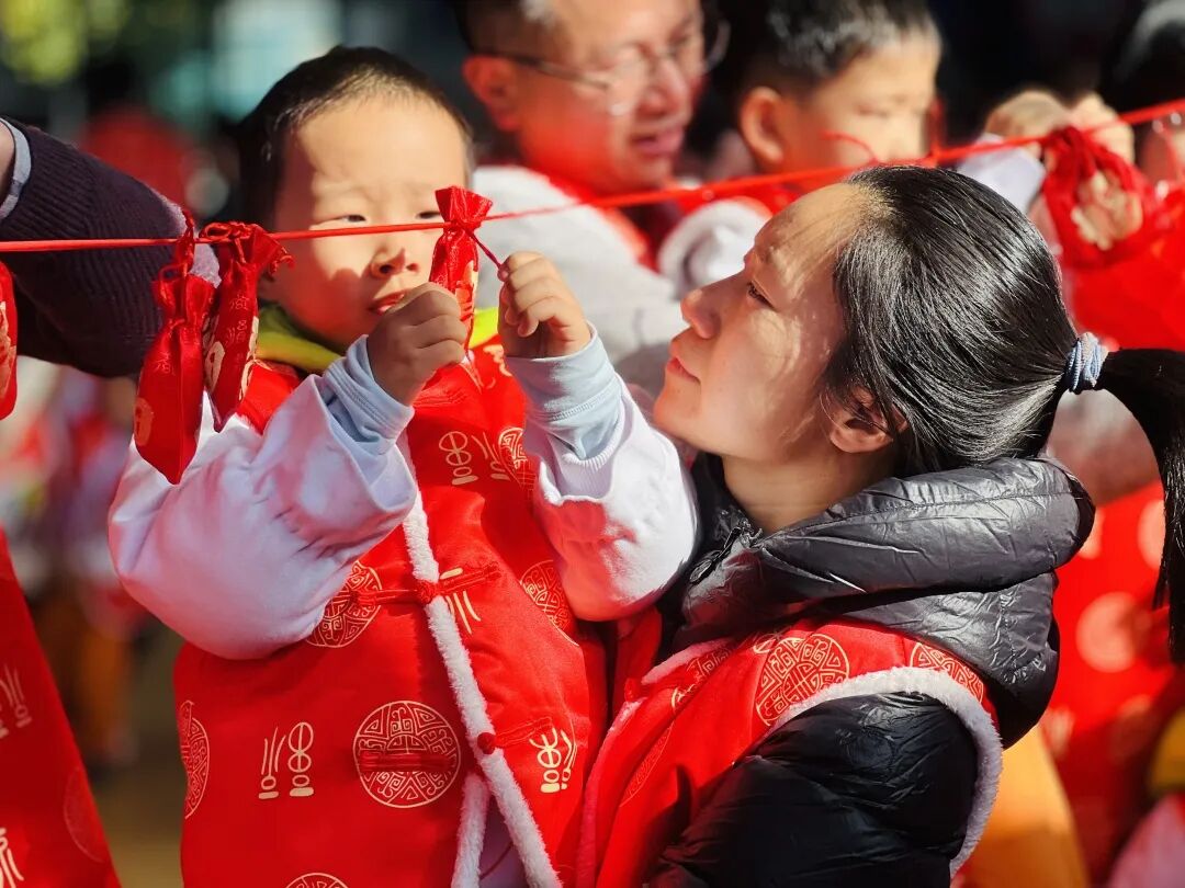 亲子游戏的时光总是充满欢乐与温馨,游戏结束后,家长们和孩子们领取福袋,将写满对家人的爱、对未来的期许、和美好的小愿望塞进福袋。小小的祈福活动,是一种情感的传递,是亲子之间对美好生活向往的一种表达。祈福活动将大家的心贴得更近,也为孩子们的童年增添了一抹温暖又难忘的色彩。