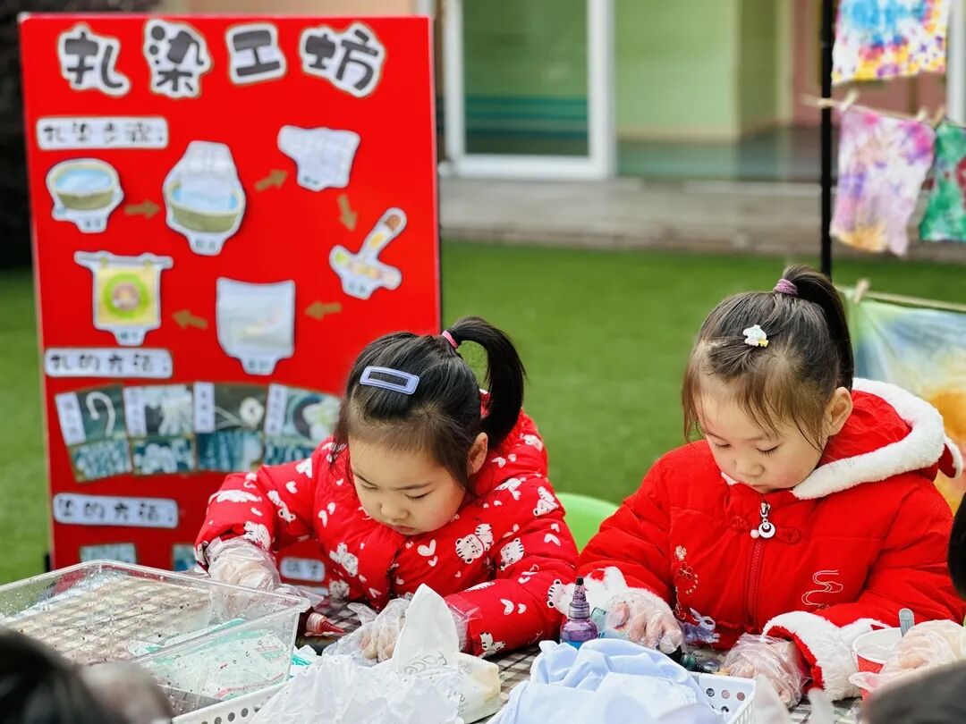 扎染、捏泥人、新年香囊、创意中国龙、京剧脸谱、醒狮拓印、文房四宝……把这些古老常见的传统民间艺术搬进园内,通过孩子们手中的工具,将传统文化的种子,种在宝贝们的心田。
