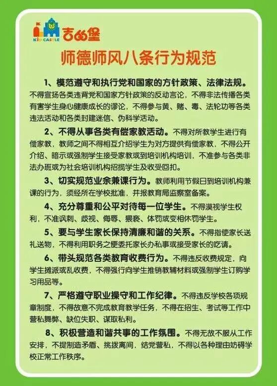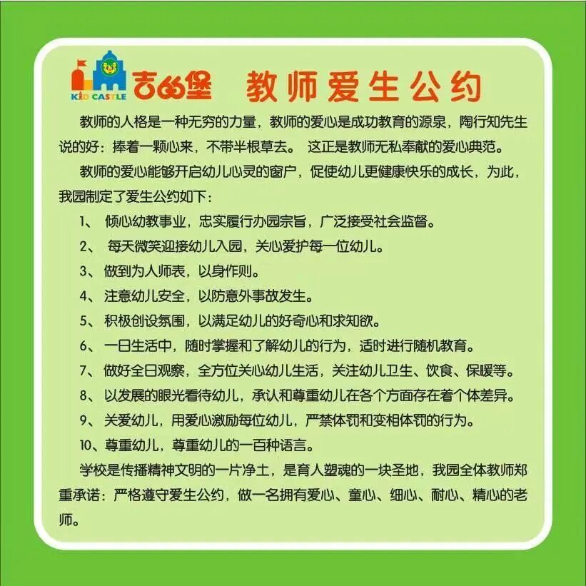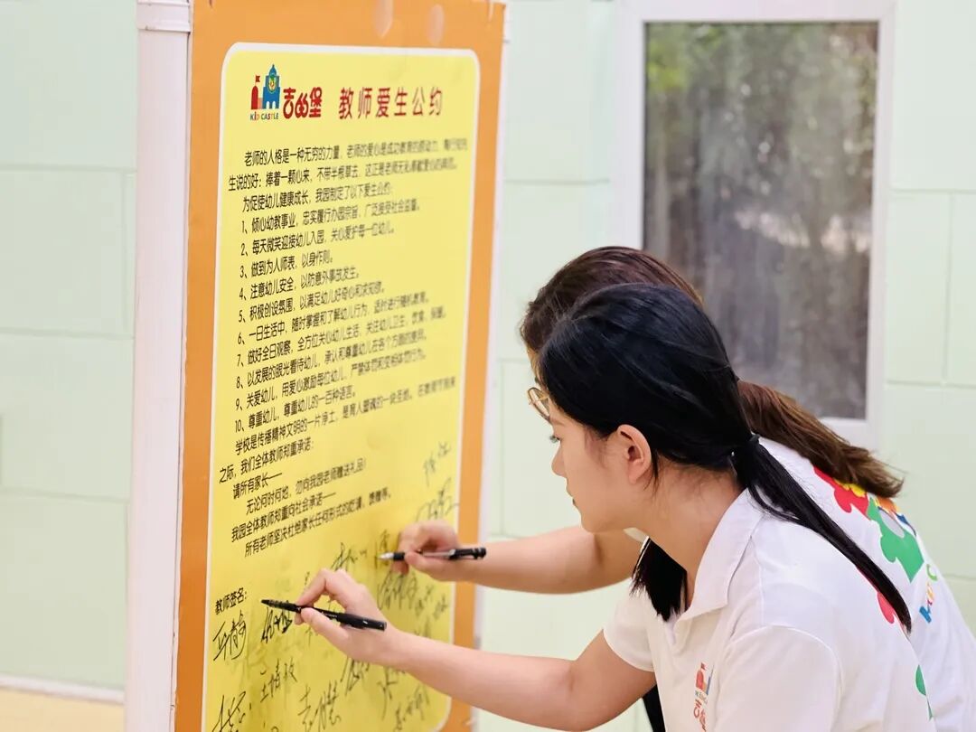 师德是教师的灵魂,吉的堡全体教师认真学习“教师行为八不准”,在规范教师职业言行的同时,筑牢自身道德底线,并庄严宣誓,忠于人民的教育事业,履行教师的神圣职责,郑重的在"教师爱生公约"上签下自己的名字,自觉接受所有家长和社会各界的监督。