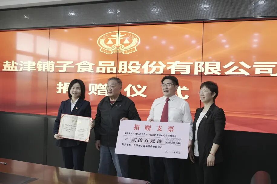 盐津铺子在公益慈善事业上同样做到知责于心,担责于身,履责于行。多年来,在洪涝灾害、教育帮扶、公益活动等方面做出积极贡献,累计捐赠金额超3000万元。
