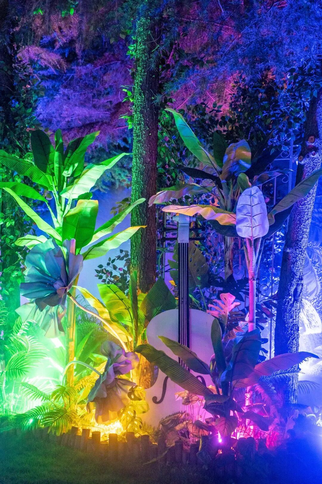 夜间的灯光更加绚烂,显得这片奇幻森林尤其神秘。大朋友记得要和小朋友一起来这里哟,给他们梦幻世界的时候,也圆了自己的那个童话梦!