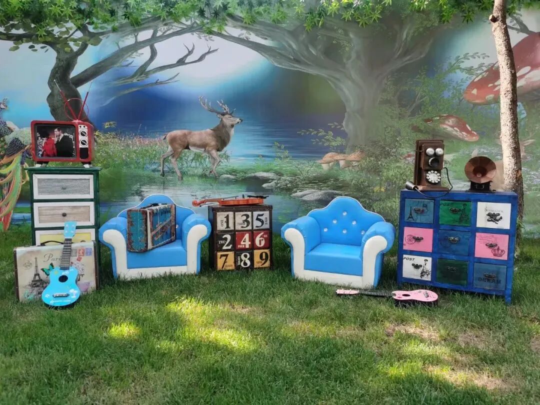 文艺青年必打卡,不论是石膏像还是喇叭音响,放在森林秘境里都都可以成为拍照打卡的道具。