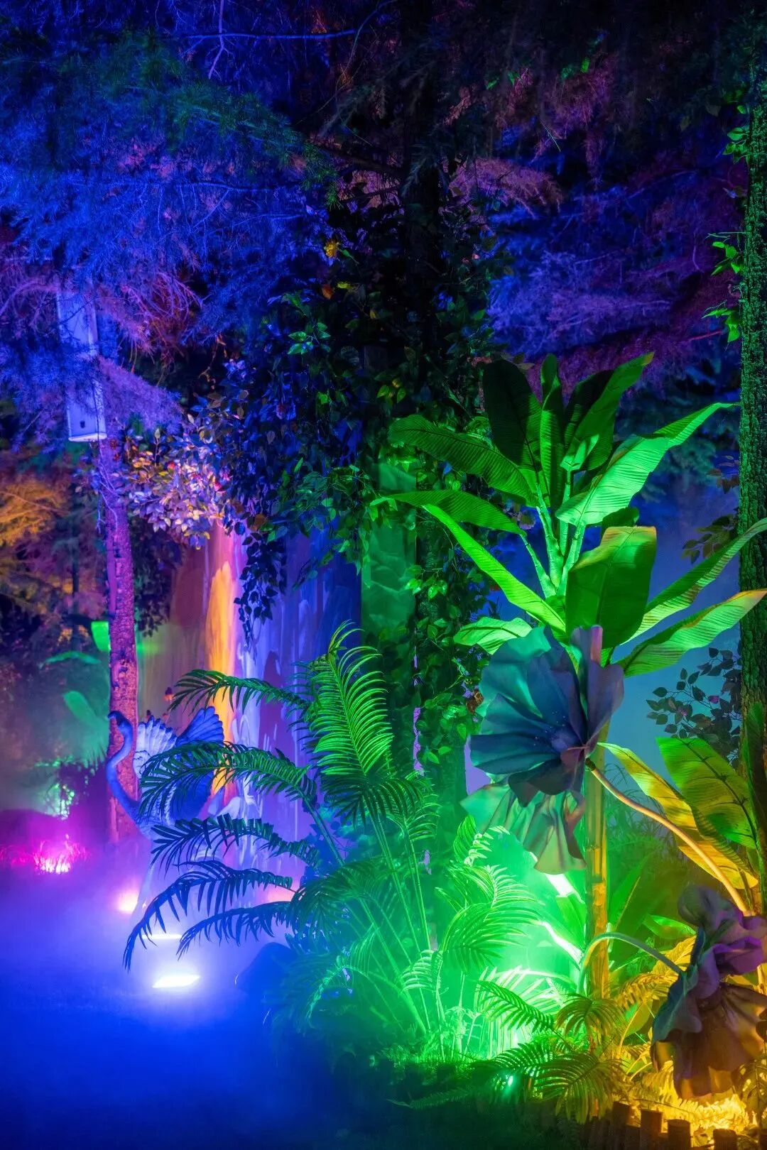 夜间的灯光更加绚烂,显得这片奇幻森林尤其神秘。大朋友记得要和小朋友一起来这里哟,给他们梦幻世界的时候,也圆了自己的那个童话梦!