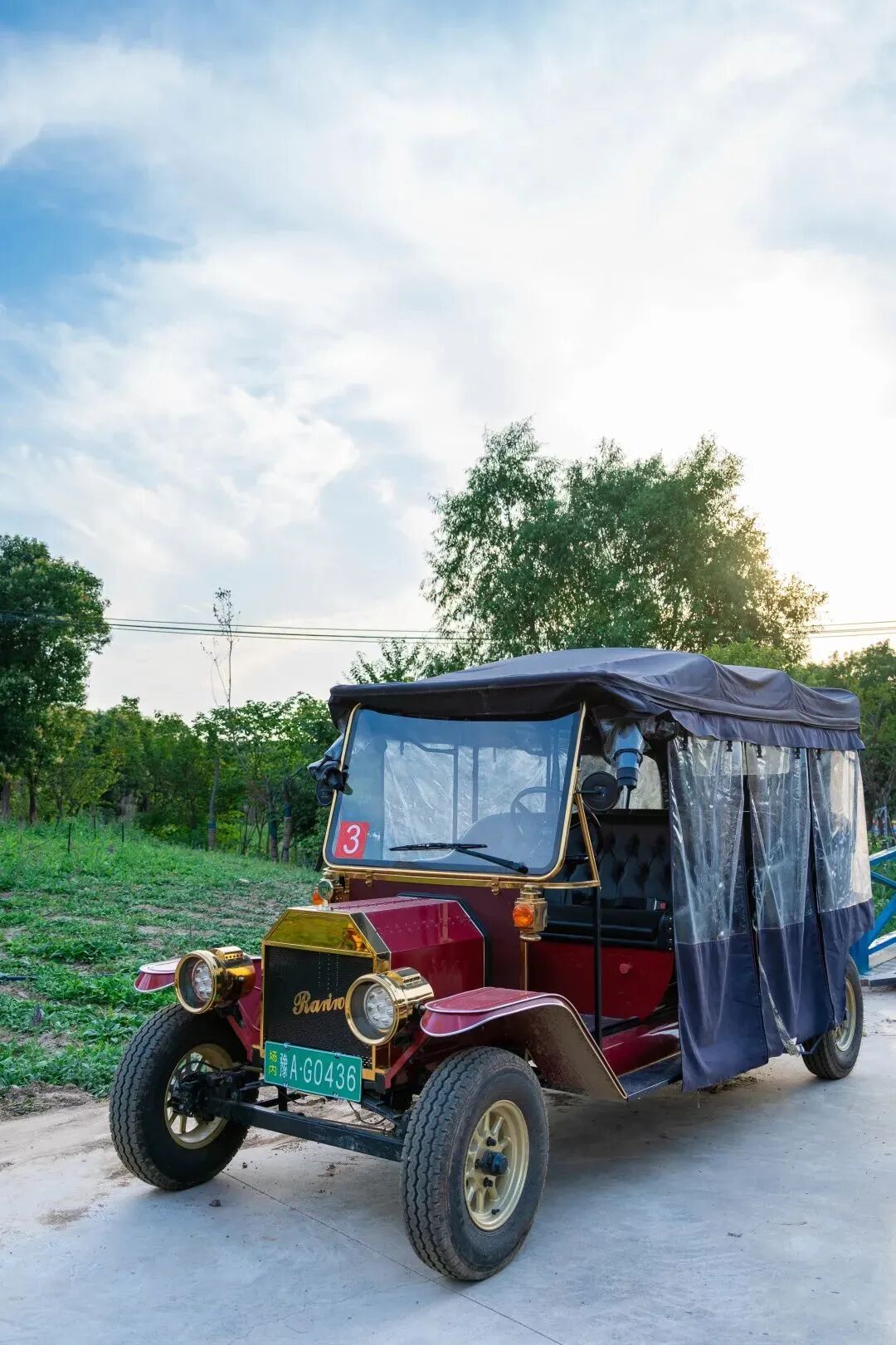 园区里还提供有交通工具,小情侣或者一家人可以开着小黄车走走停停,比较自由,速度很低十分安全;也可以买“老爷车”车票,在园区内设置的站点可不限次数乘坐,非常方便。