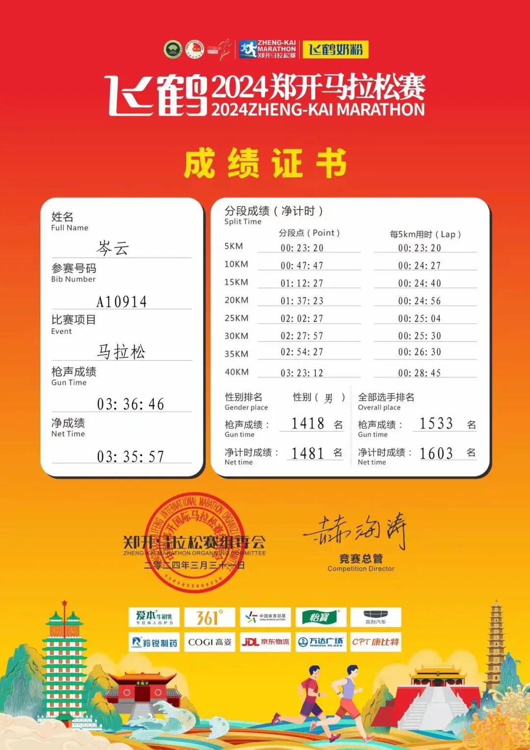 3月31日,郑开马拉松燃情开跑,岑云大哥当然也参与了此次跑马。“虽然后半程开始吃力,最终没有达成pb,但前半程的速度我就是朝着Pb去的,不过后半程速度起不来了哈哈哈!不过能顺利跑完全程,也没有什么遗憾了。”