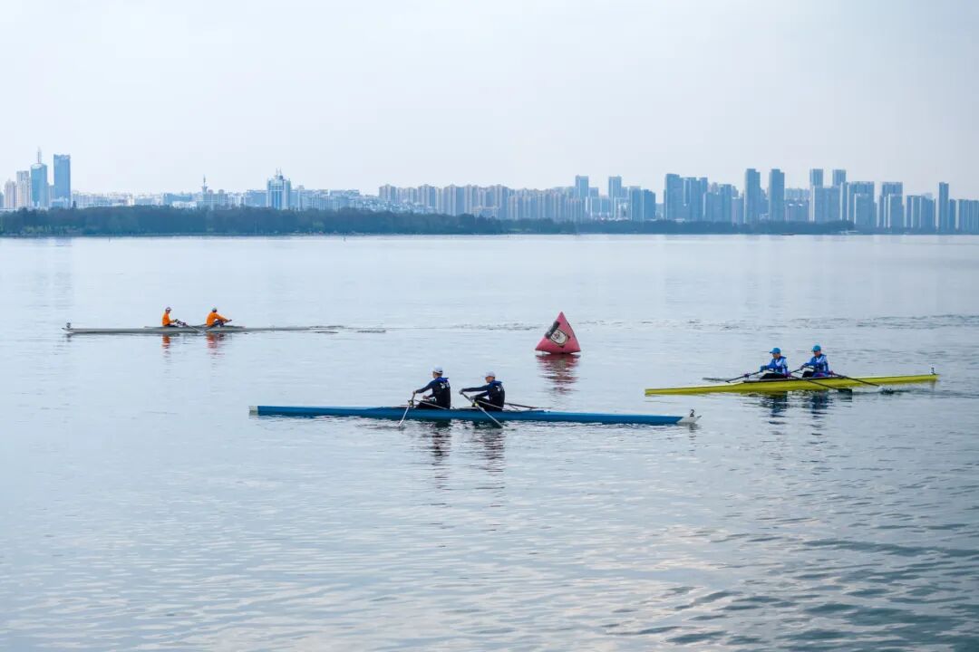 22日上午,赛艇队从郑州出发,乘坐高铁前往武汉。抵达后,小万和一众队员第一时间奔赴东湖,迫不及待地准备试划。
