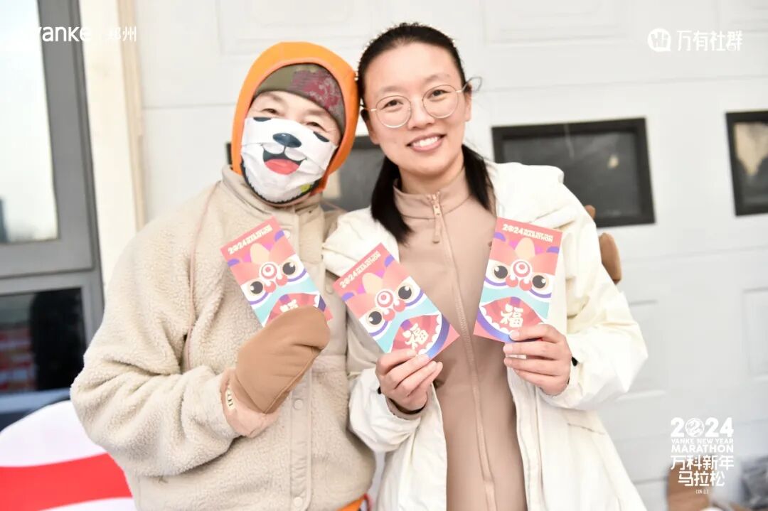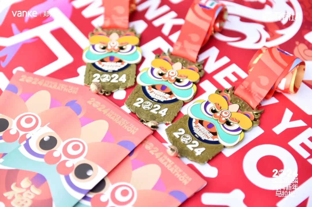 一些业主也在身上贴着小万贴纸,将小万的祝福化作奔跑前行的力量,照亮新年的第一天。所有完赛的业主除了领取龙年定制版的马拉松奖牌,还有寓意红红火火的新年第一份利是红包,新年利是封,博得好彩头,新一年的好运从这里开始!