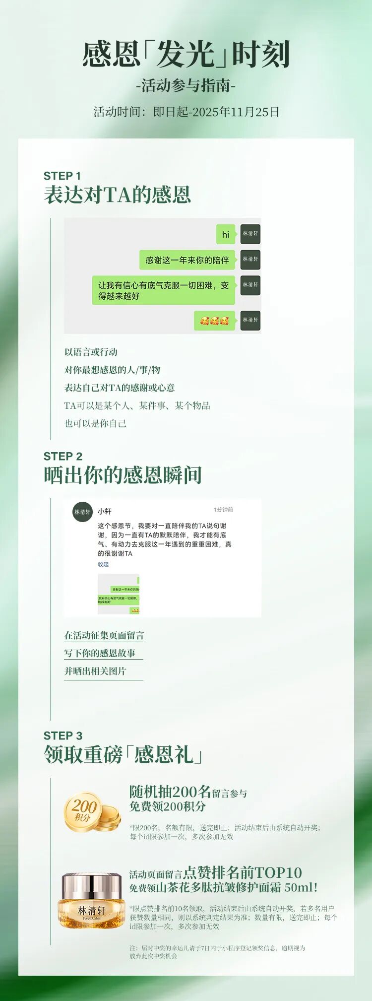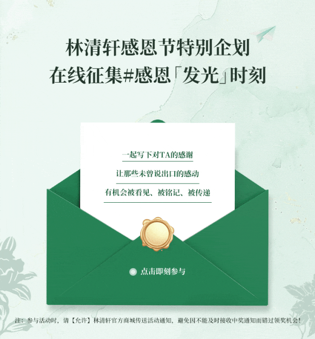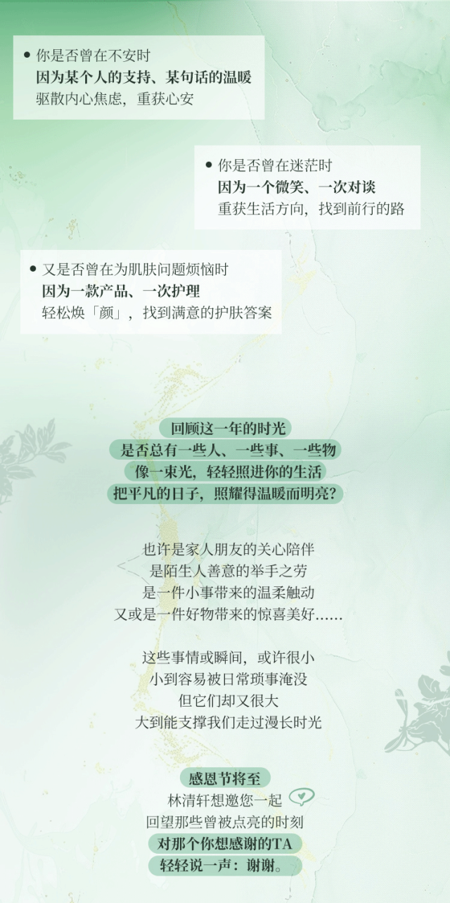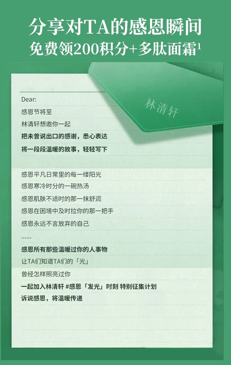 摘要:【文末有礼】一起加入林清轩感恩节特别征集计划,分享你的感恩时刻,免费领200积分+多肽面霜!
