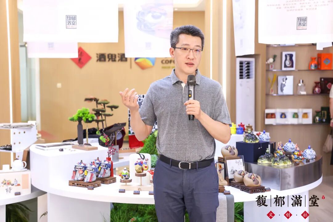 当天,酒鬼酒股份有限公司副董事长、总经理郑轶,党委副书记、纪委书记、副总经理胡晓熹,副总经理邹斐,财务总监赵春雷,总经理助理兼品牌管理中心总经理刘永泉,供应链管理中心总经理殷泽培及湘西各大景区、酒店的负责人、参与封坛仪式的经销商代表,湘西非遗手工艺人,独立设计师等近百人共同为文创社揭幕。