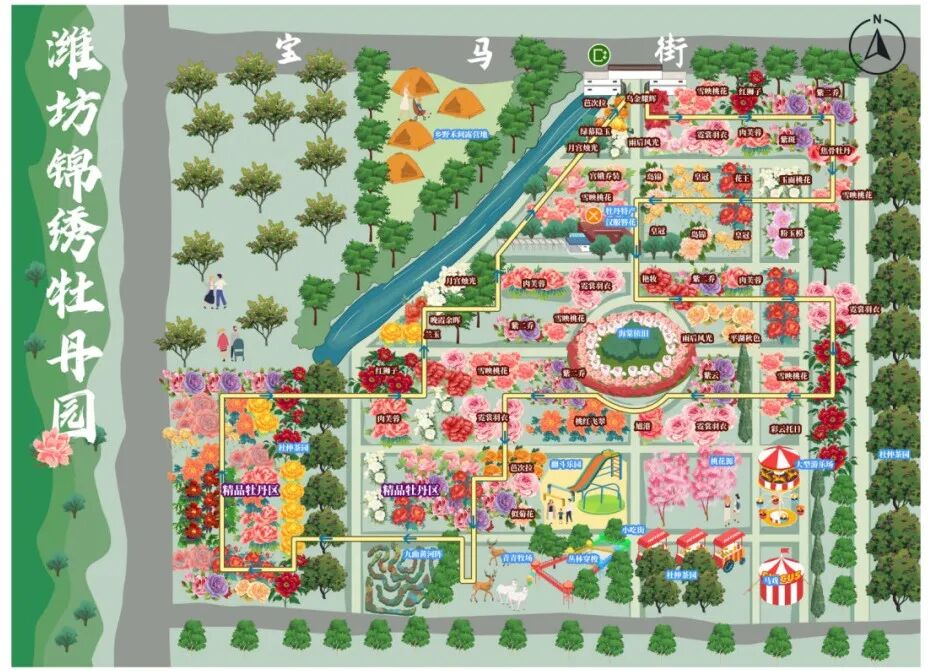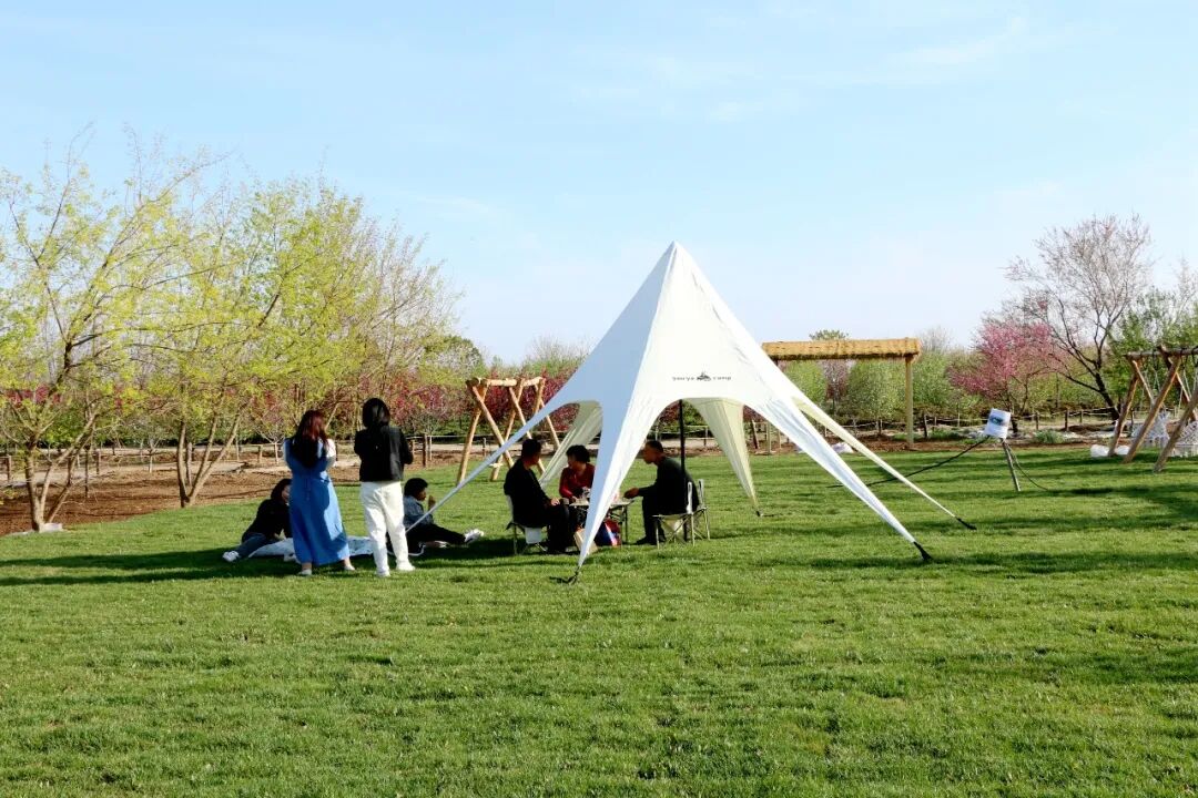 上百棵名贵桃树有品霞桃、白玉碧桃、菊花碧桃、洒金碧桃等多个品种,海棠与紫荆交相辉映,搭配有多组原木秋千,打造现实版桃花源。在锦绣海棠的包围下,栽种着一大片草坪,配有天幕、吊床、秋千等设施;可露营、烧烤野餐、围炉煮茶等,尽情享受这一份轻松时刻。在这里,可以搭建起自己的帐篷,或是躺在柔软的草地上,仰望蓝天白云,聆听鸟鸣虫唱。支起烧烤架,烤制美味的食物,露营地四周,牡丹随风摇曳,送来缕缕芬芳,在亲近自然的过程中,沉浸于牡丹园独有的浪漫氛围里。在青青牧场,孩子们可以亲近自然、与小动物亲密互动。温顺的梅花鹿、活泼的小羊......为这片花海增添了几分生动与趣味。在翻斗乐园,有多种秋千、木质无动力游乐设备和大型丛林穿梭可以免费游玩,还有小火车、彩虹滑道、充气城堡、枪林弹雨等多种游乐设备。美食街上,各种美食琳琅满目,让人垂涎欲滴。走累了,不妨在这里品尝一份热腾腾的小吃,或是来一杯清凉的饮品,让身体与心灵都得到满足与放松。锁定大众网潍坊直播间