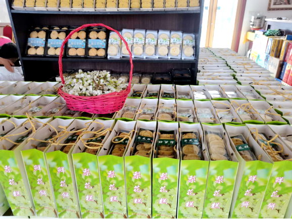 每年的梨花时节,用梨花包的水饺也成为游客必吃的特色食物。梨花水饺选用花骨朵,泡好后捞出沥干、剁碎,加入五花肉馅、韭菜、葱姜、花生油、盐、味精、酱油,香喷喷的梨花水饺别具风味。