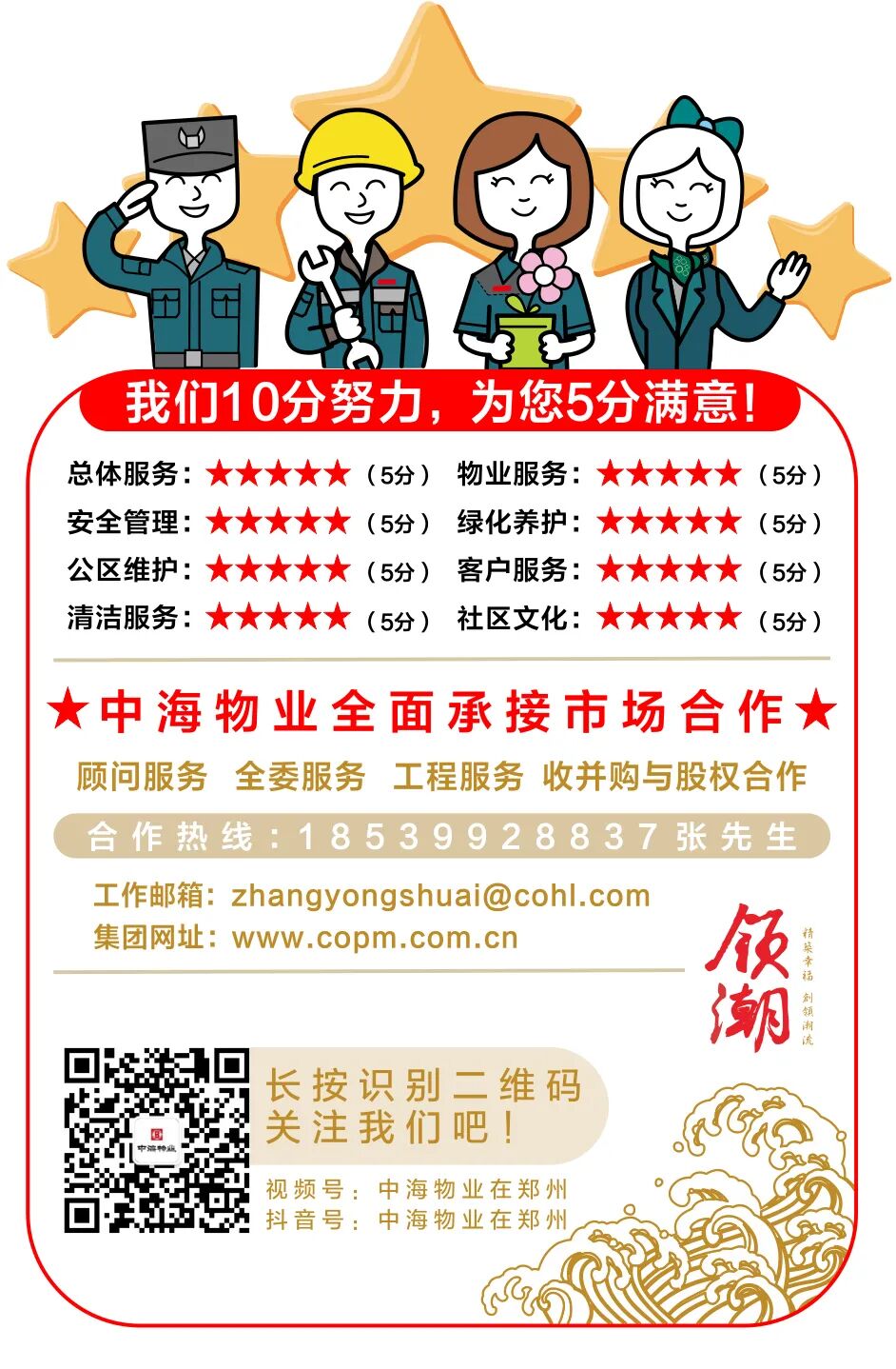 文章内容来源于公众号:中海物业在郑州,点此可查看原文,内容版权归相关企业所有,本网站仅供交流学习。若涉及版权问题或存在侵权情况,请及时与我们联系,我们将第一时间进行删除处理。