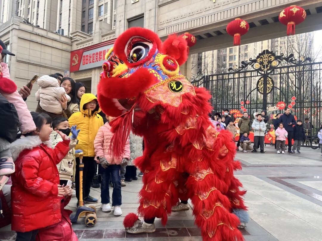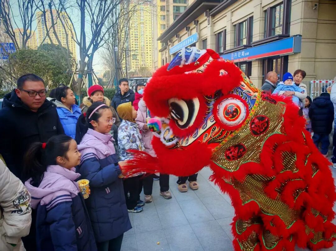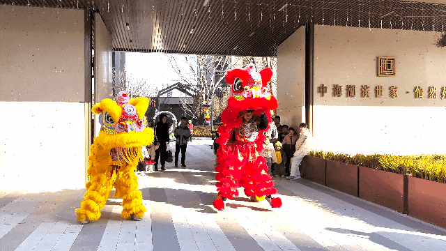 锣鼓喧嚣的热闹在今日达到顶峰,有节奏的鼓点在园区荡漾开来。灵活飒爽的狮子们摆动着身躯,在层层人海中欢腾跳跃,热情的与周边业主互动着,任由业主们轻抚狮身,以送去最热烈的祝福。
