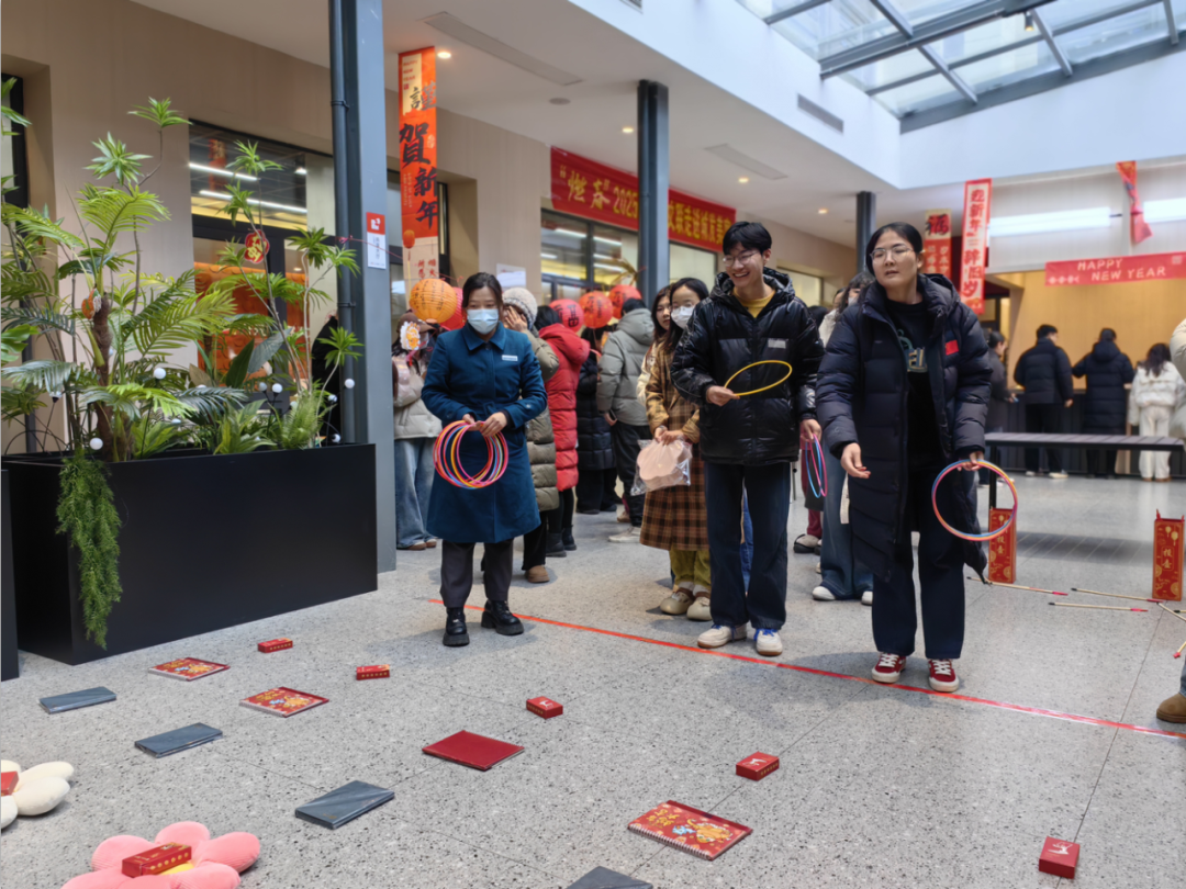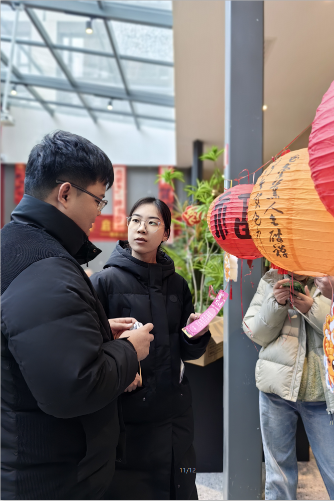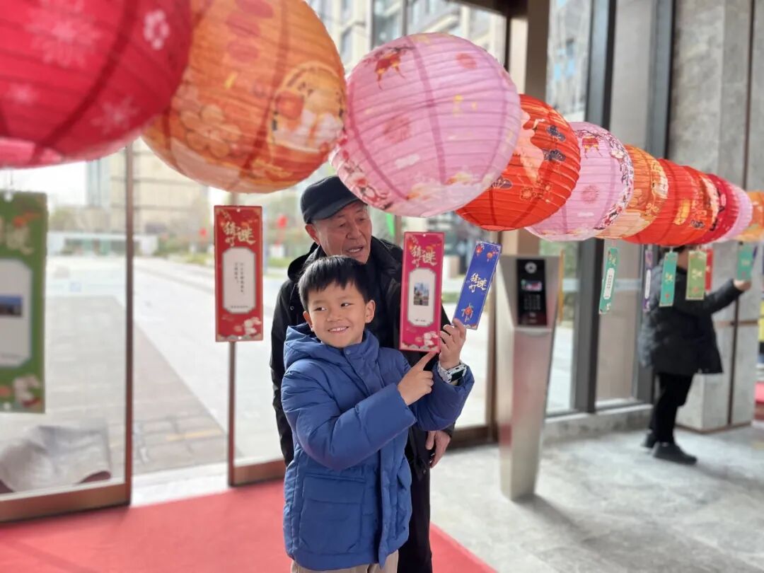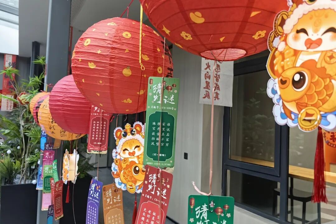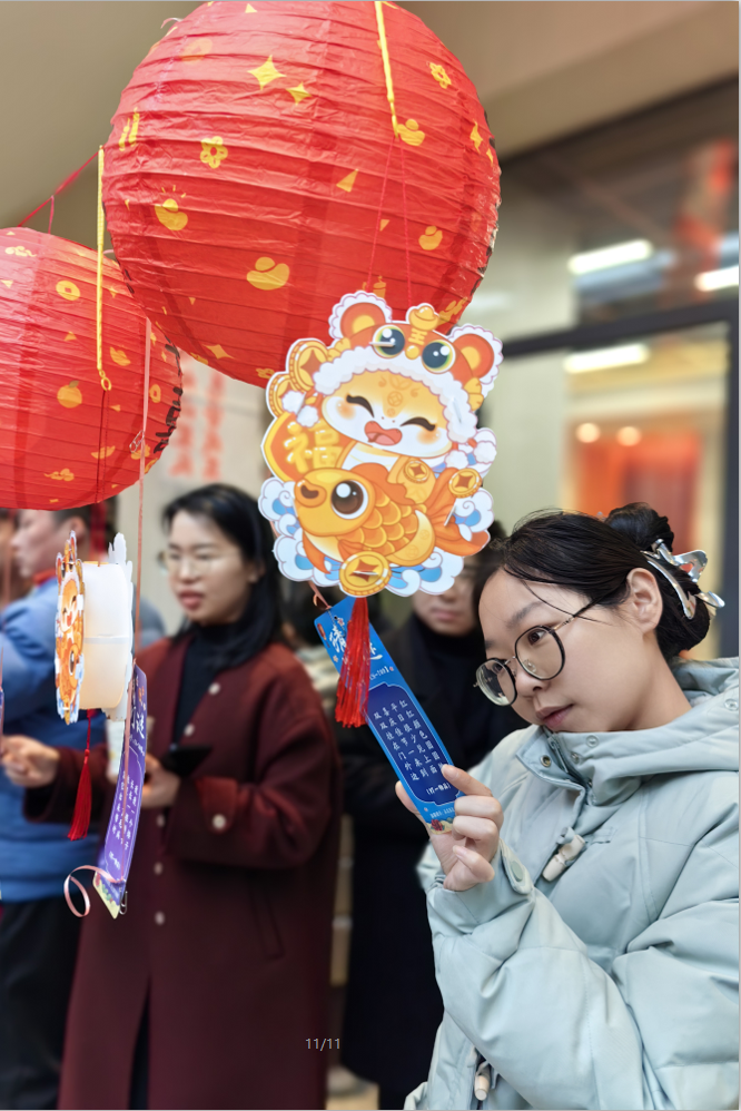 新一年讨个彩头,可能是游戏中恰好套中喜爱的那个,还可能是在“财神爷”那领到的小小“金币”,最后在猜灯谜中体验文字的乐趣。
