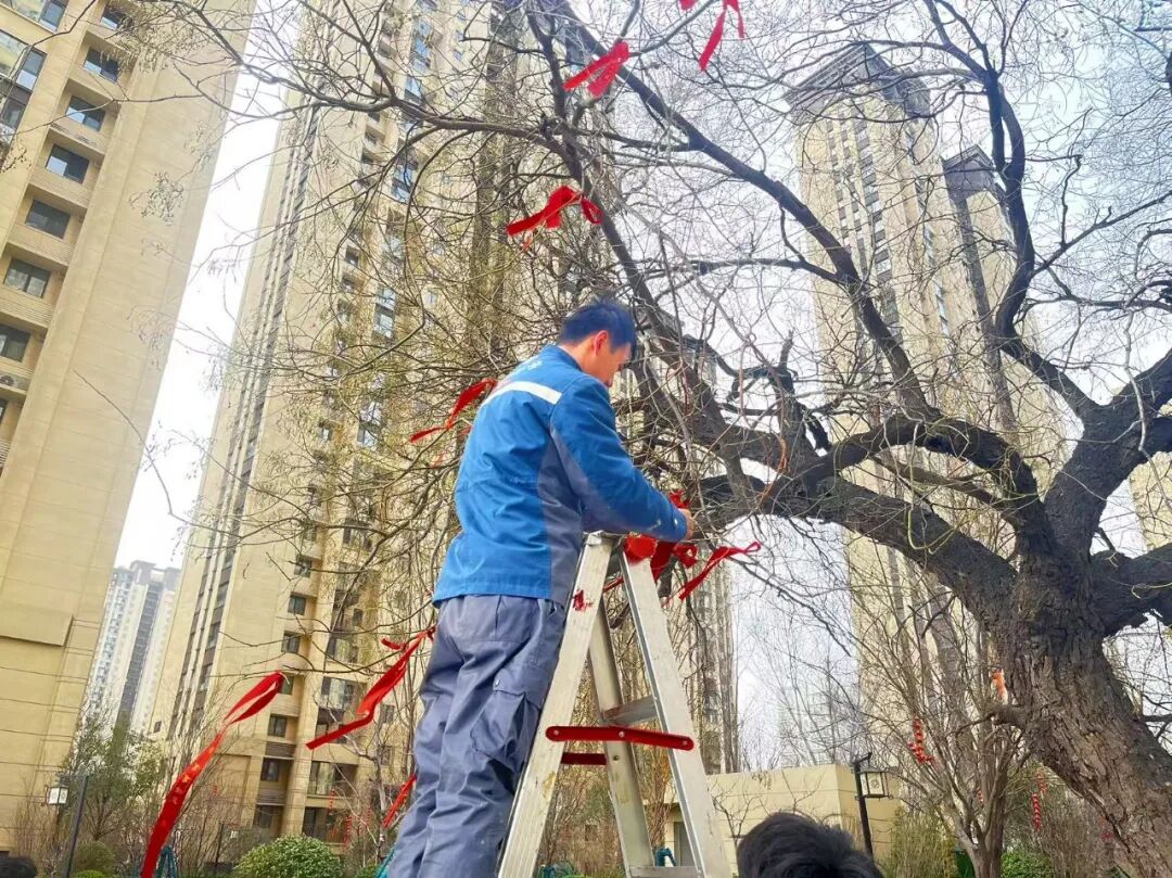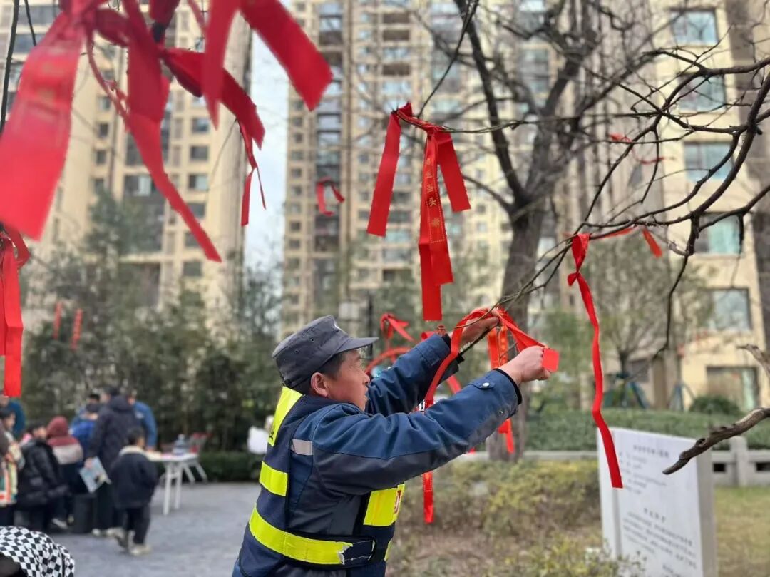 祈福丝带寄托对新一年美好期盼与祝愿,以不同的书写痕迹在红色方寸之间清晰且深刻,这是古老的祈福方式更是写满深度的佳节庆祝。