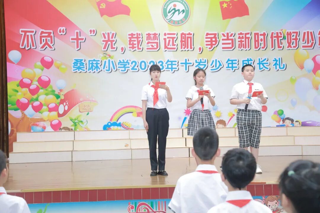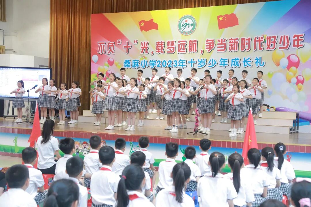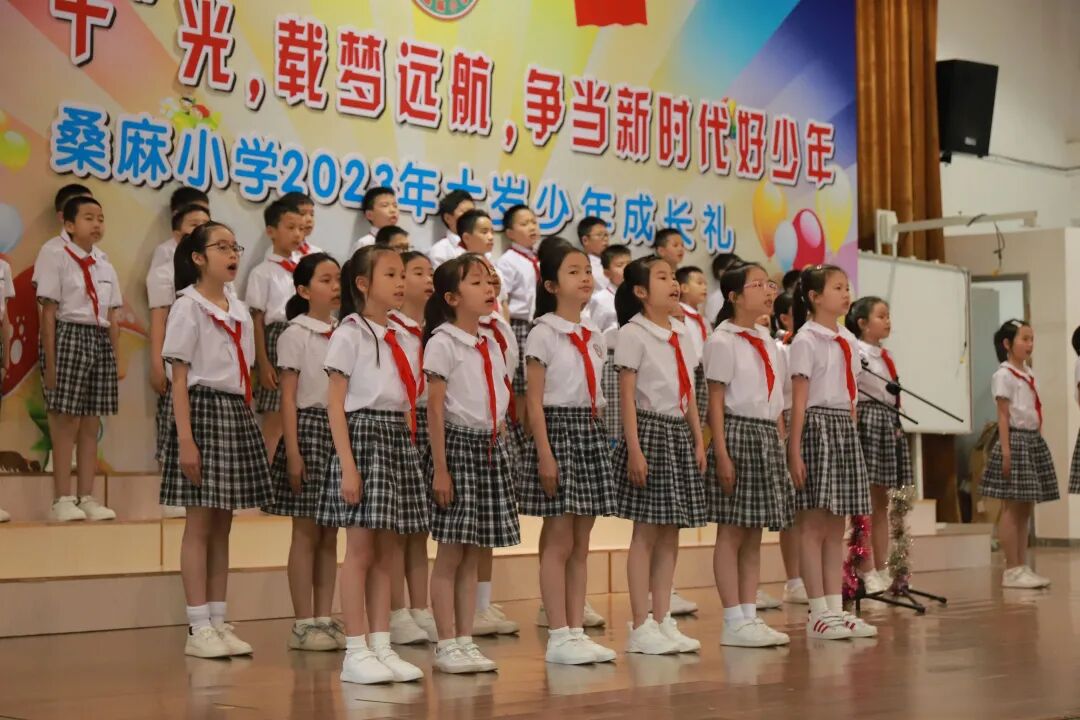 为了让四年级的孩子们体验、分享成长的快乐与感动,学会感恩,编织梦想,展现成长的魅力,4月27日上午全体师生齐聚在桑麻小学的礼堂,举行了不负“十”光,载梦远航,争当新时代好少年为主题的“成长礼”活动,用仪式礼赞十岁少年新篇章,助雏鹰展翅翱翔。