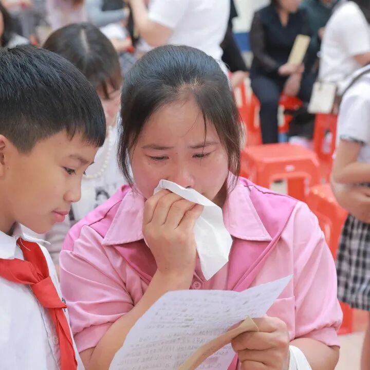 在十岁这个新的起点,爸爸妈妈内心也有千言万语想对孩子们说,他们早就将浓浓的爱化作一枚枚信笺。孩子们读着爸妈的爱与期待,爸爸妈妈们也看着孩子们精心给自己准备的书信,空气里都是感动的气息。