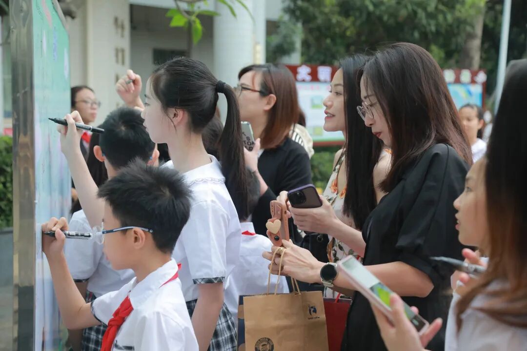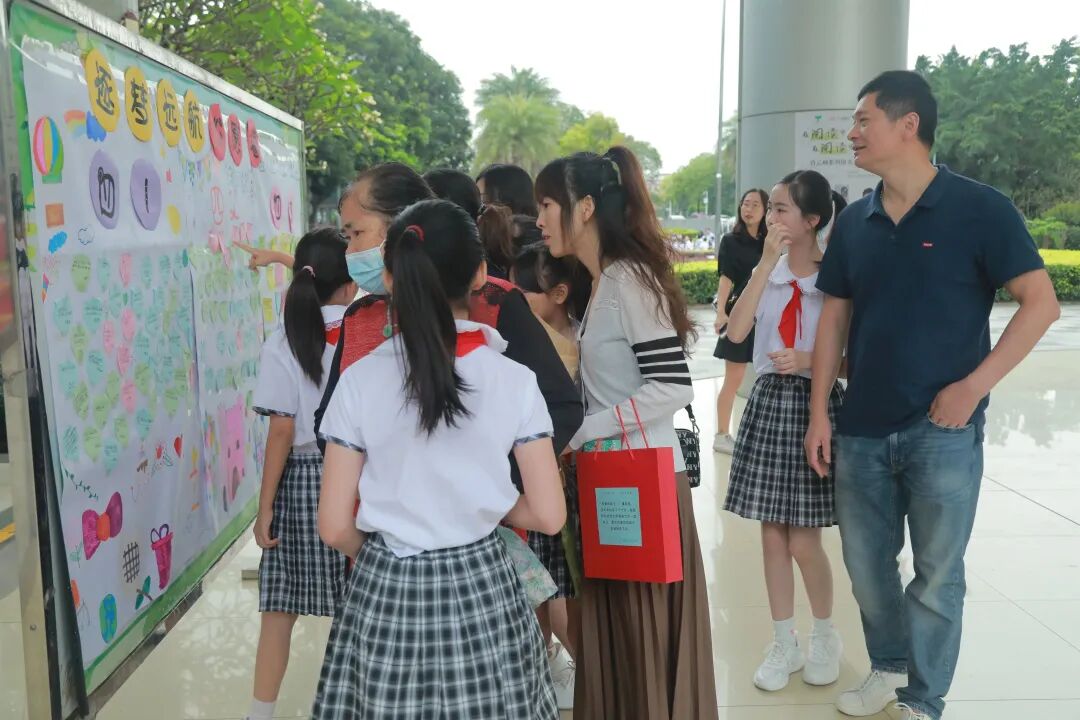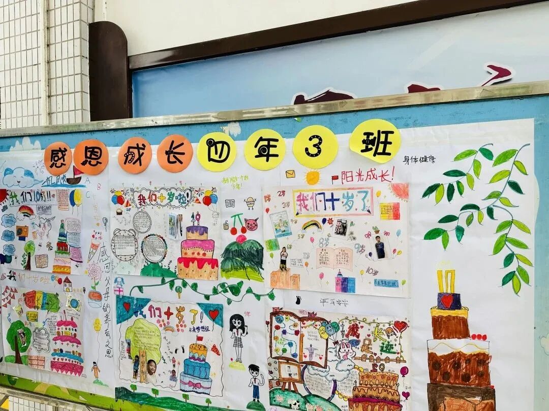 不知不觉,四年级的孩子们在学校里已经度过了四个春秋,一路洒下欢笑,迎着朝阳,沐浴春风,孩子们牵着家长的手走进校园,和家长一起郑重地在墙上留下了成长签名,随后一起观看手抄报展板,心愿墙、和家长一起印手掌,一路上孩子们欢声笑语,踏歌而行,绽放最真的笑颜,奔赴灿烂的十岁之礼。