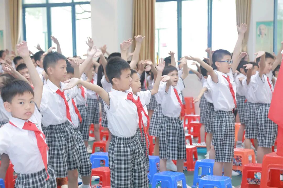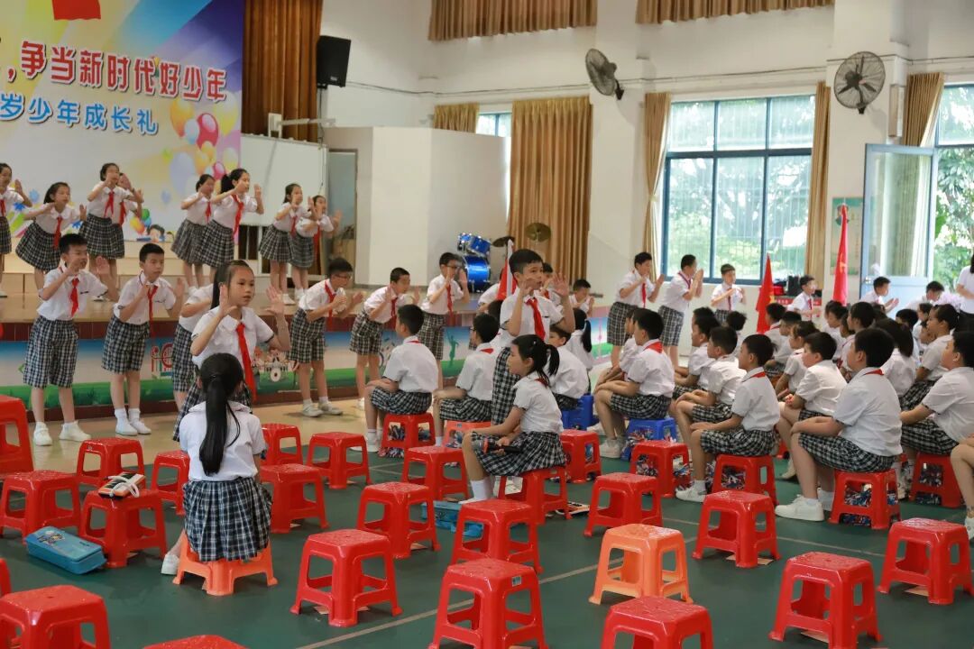 在成长礼的最后,阳光少年们跟着大队辅导员苏慧老师举起右拳,许下了成长的诺言,礼堂内回响着孩子们的铮铮誓言!
