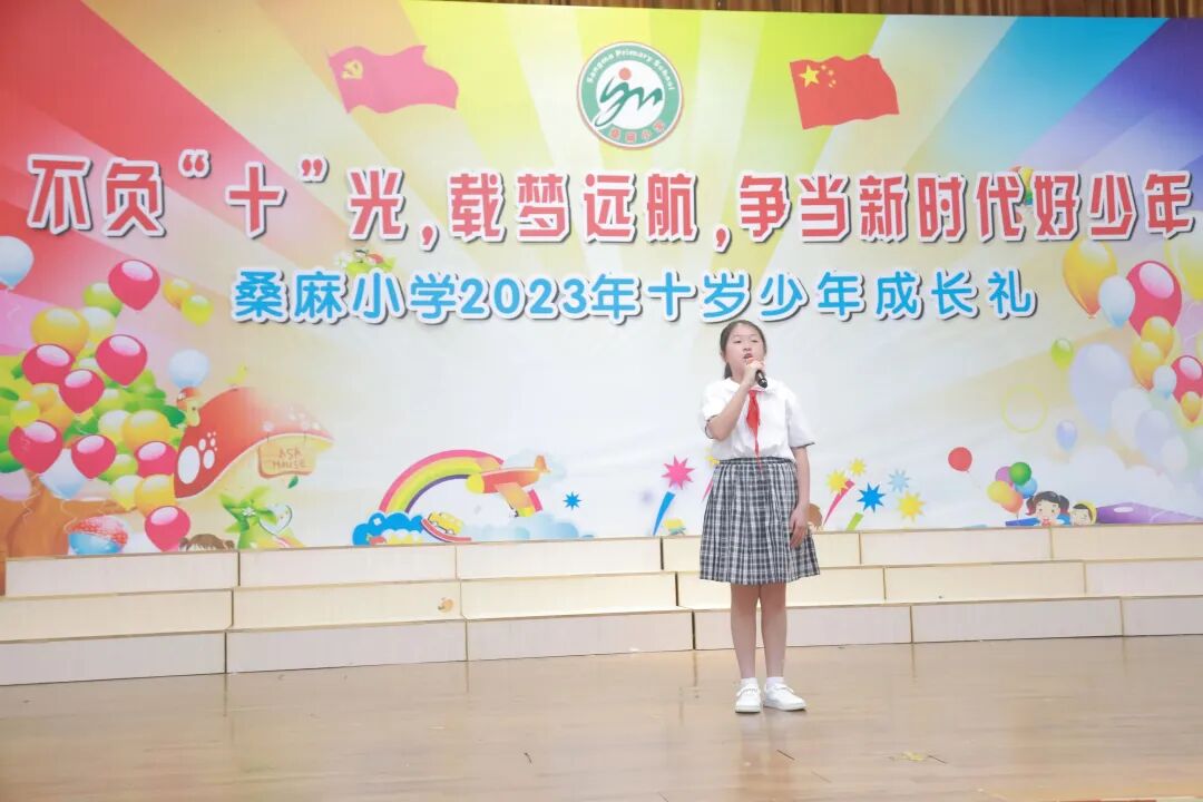 十岁,是我们灿烂人生的第一站,桑麻小学邹敏校长为四年级的孩子们送来了深情的祝福并表达了殷切的希望。伴随着热烈的掌声,本次活动正式拉开了序幕。