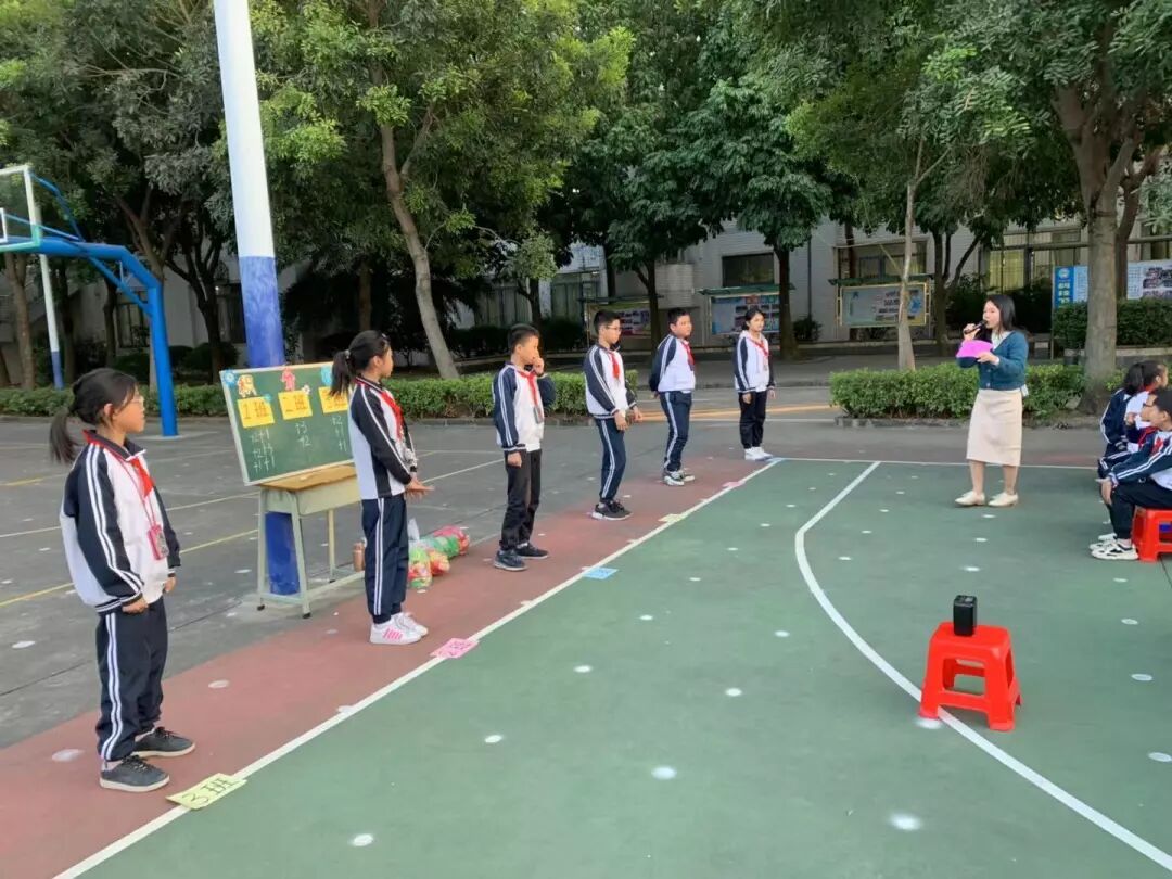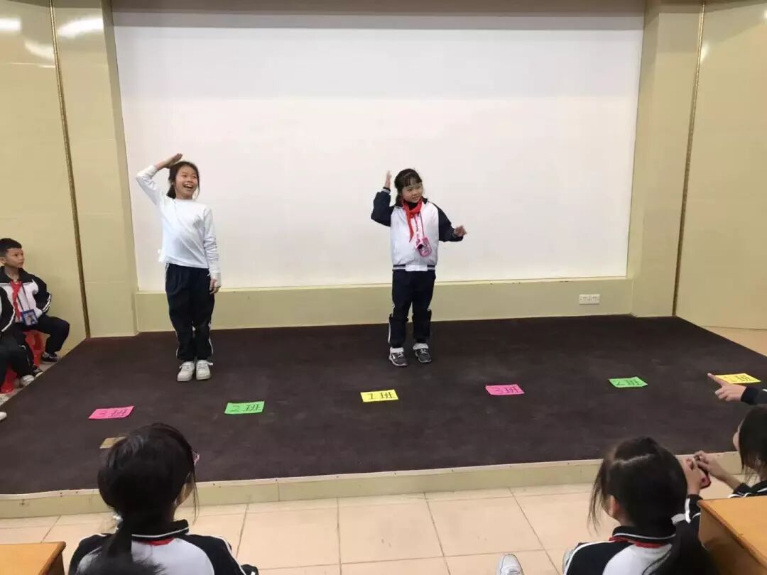 每班每轮派出一人参赛,根据老师所读句子做出动作,最快做出动作的同学为该班加一分。