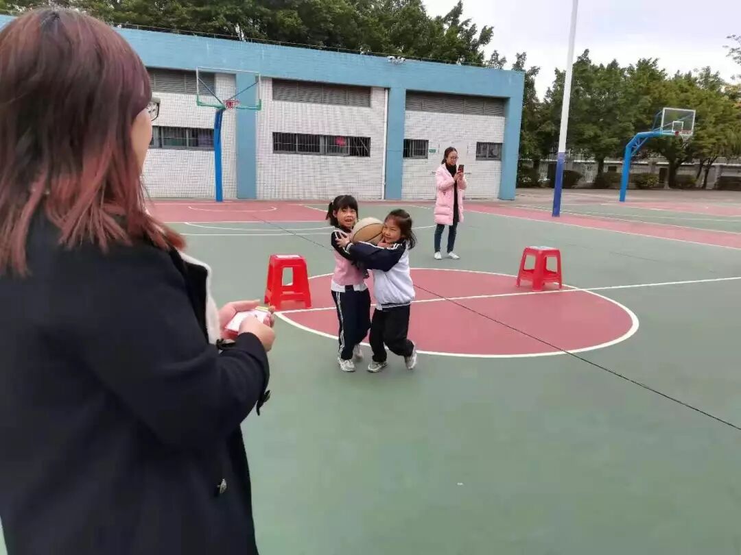 两人一组,读对老师手上的卡片单词,方可面对面把篮球夹住,在起点运到终点再绕回来,下一组继续接力,最快完成的班级加一分。