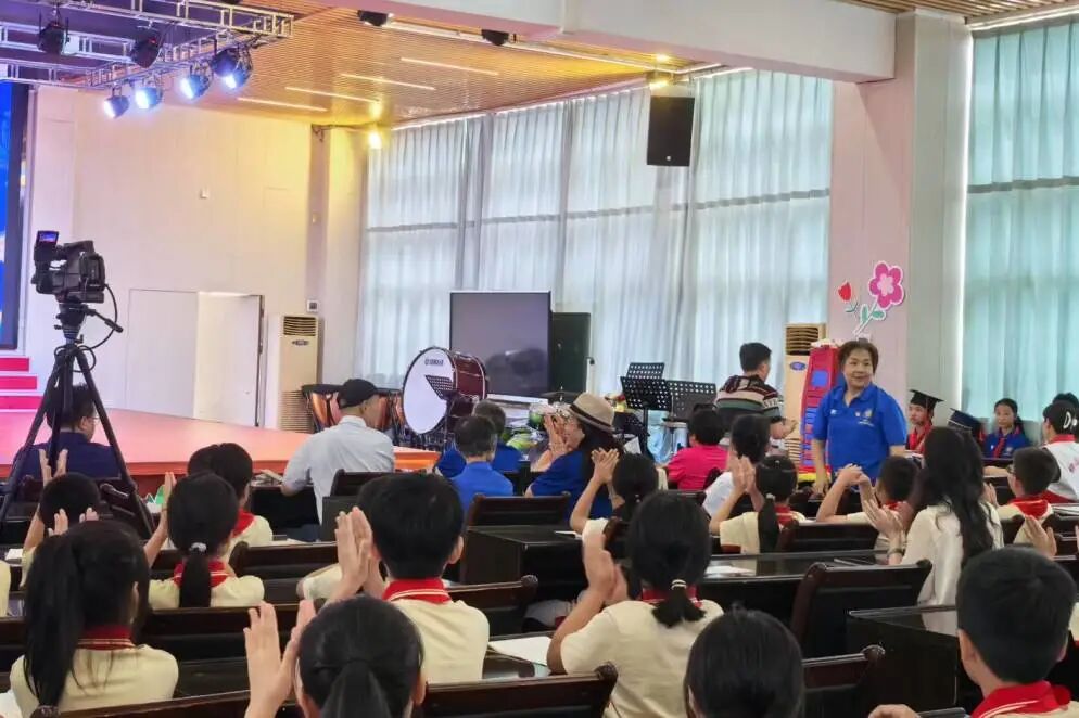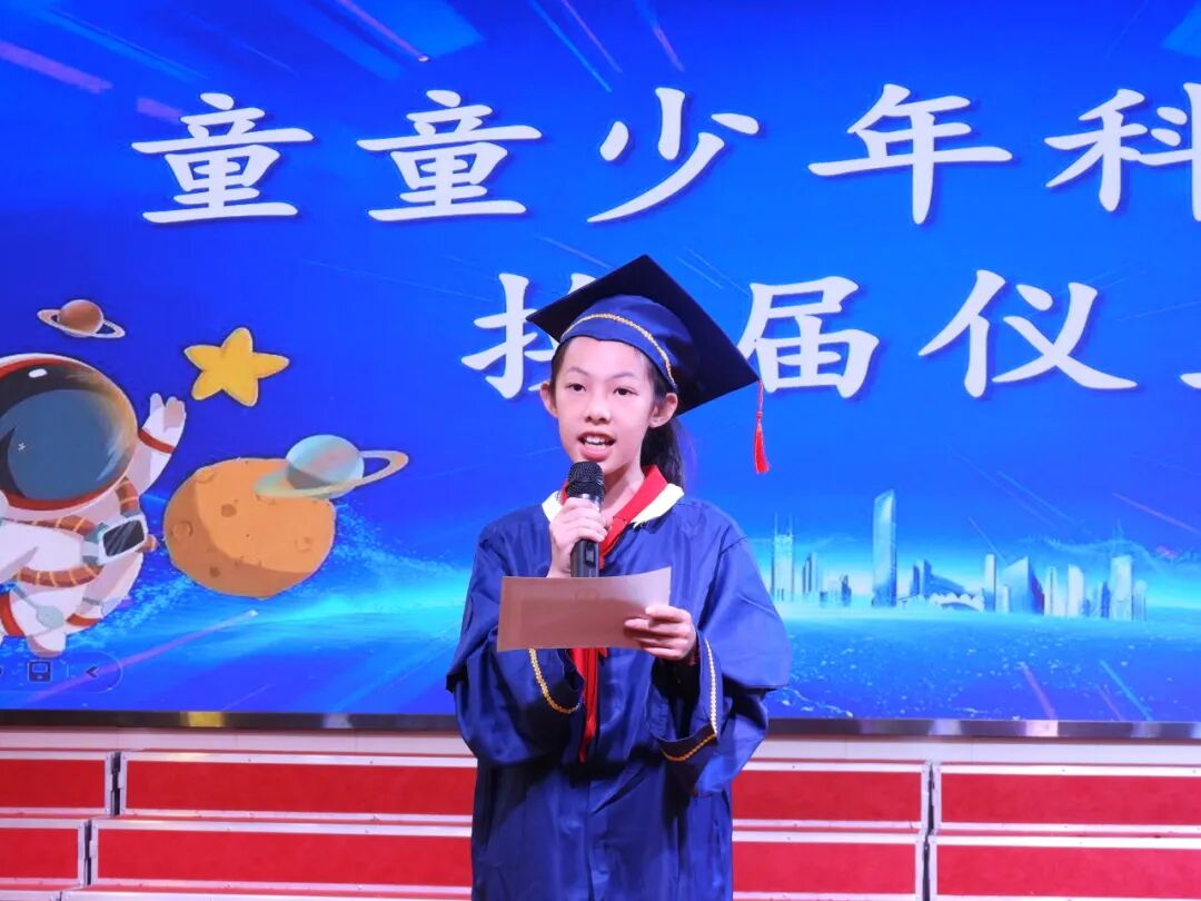 闭幕式上,首先由佛山市同济小学叶伟军书记发表热情洋溢的致辞,他带领师生回顾了 3 月 18 日至 6 月 14 日期间的精彩活动:北京大学周静教授的《神奇的光学现象》科普讲座、李新晖教授的《和 AI 做同学》主题分享、“米吴趣味科学秀进校园” 等体验活动,以及走进社区的科技惠民行动,这些活动汇聚了政府、学校、社区、企业多方力量,为市民呈现了一场兼具科普性、趣味性和实用性的科技盛宴。
